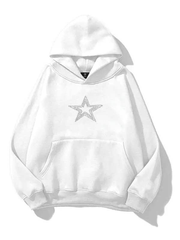 Unisex Star Stroke Taş Baskılı Sweatshirt Beyaz