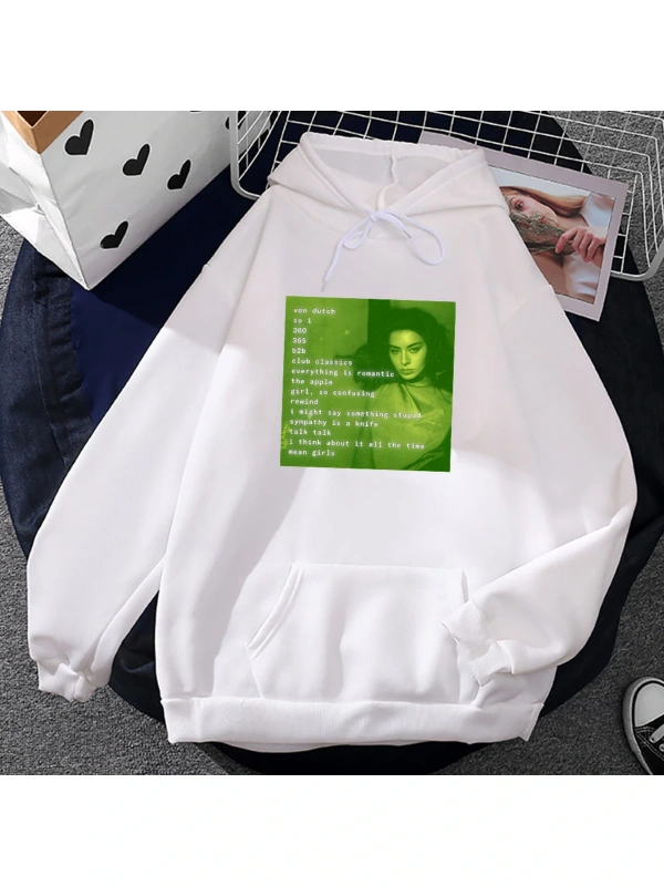 Beyaz Unisex Erkekgiyim Brat Pop müzik şarkıcı Charli XCX grafik baskı ile cep raha