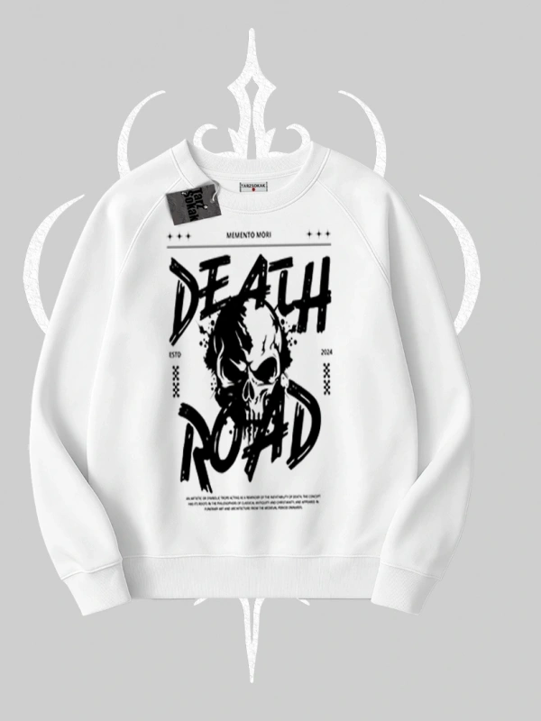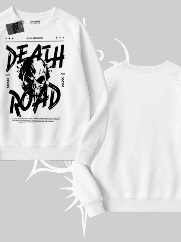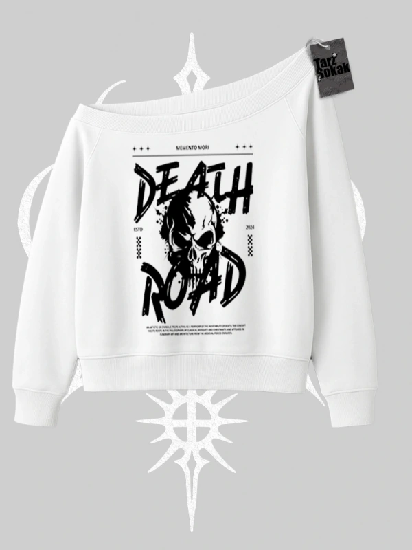 Kayık Yaka Sweatshirt Death Road Memento Mori Street Manifest