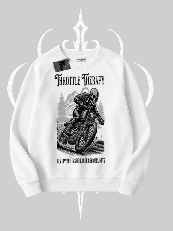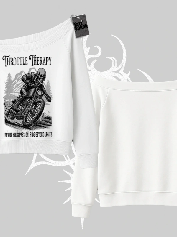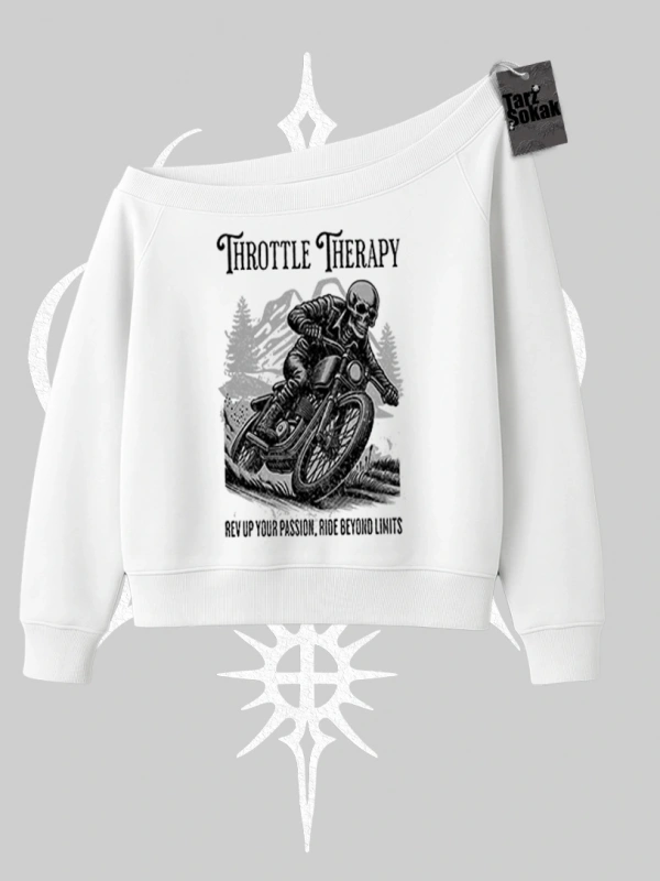 Kayık Yaka Sweatshirt Throttle Therapy No Brakes Just Freedom