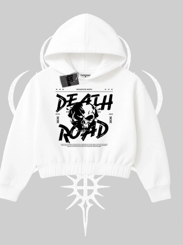Kapşonlu Crop Sweatshirt Death Road Memento Mori Street Manifest