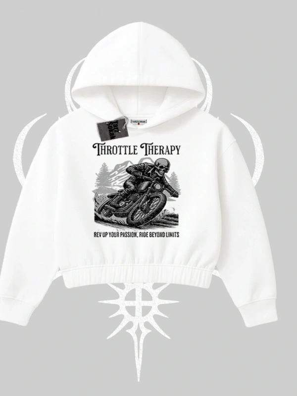 Kapşonlu Crop Sweatshirt Throttle Therapy No Brakes Just Freedom