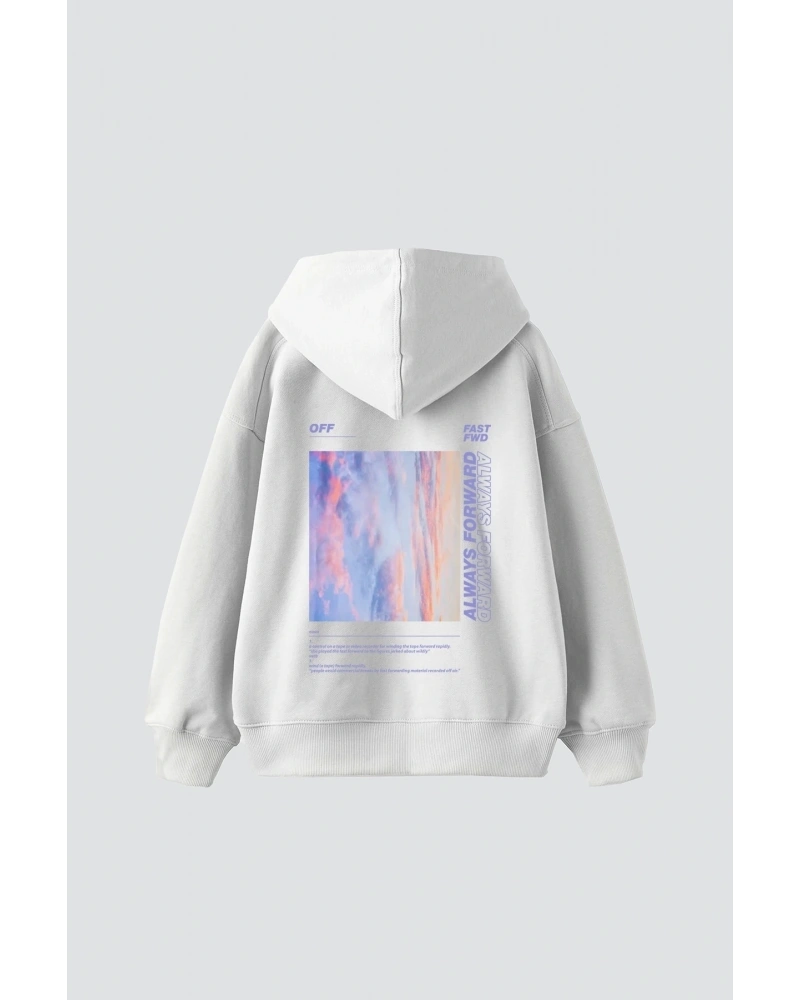 YQYQ----Oversize Mor Saçlı Lila Genç Kız Tasarım Baskılı Unisex Kapüşonlu Sweatshirt Hoodie Beyaz