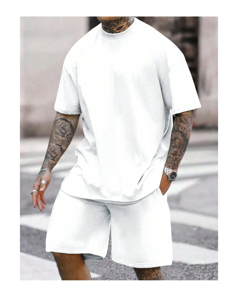 2 adet/takım Erkek Yaz Rahat Spor Düz Renk Mürettebat Tişört ve Şort Takımı