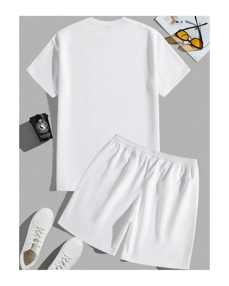 Manfinity Hypemode Erkek Günlük Mektup Baskılı Kısa Kollu Tişört ve Şort TakımıTişört Ve Şort Takımı