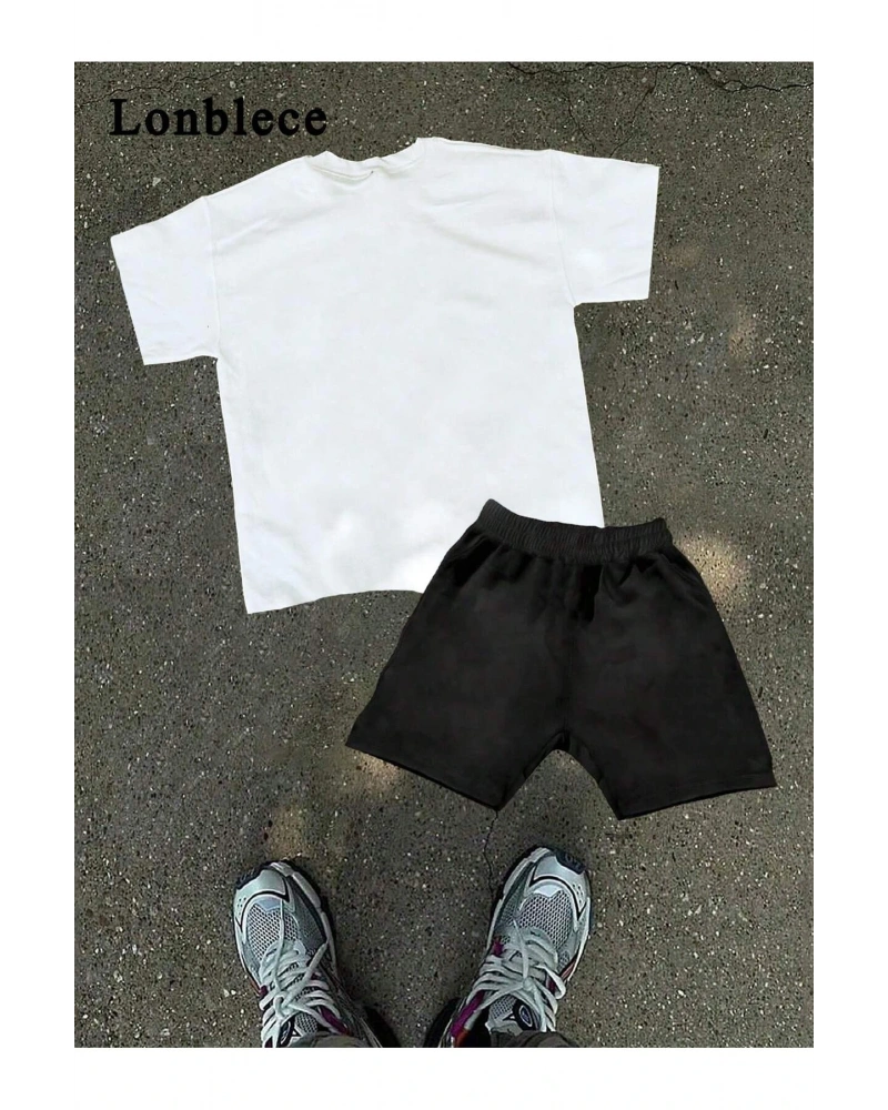 Manfinity EMRG Erkek Günlük Araba Harf Baskılı Kısa Kollu Tişört Ve Şort Takımı