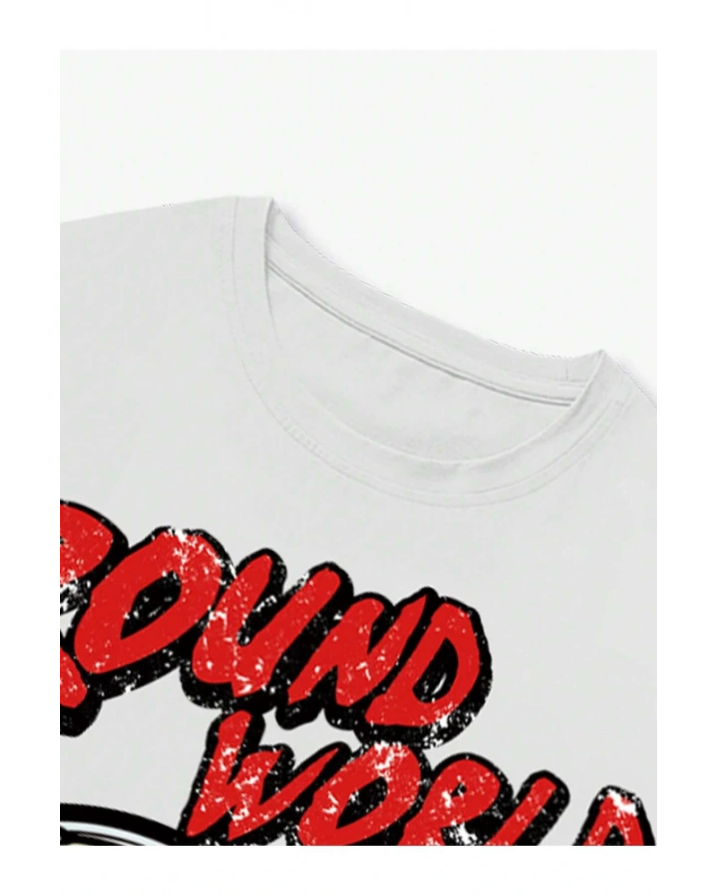 Manfinity EMRG Erkek Harf ve Araba Baskılı Rahat Yuvarlak Yaka Kısa Kollu