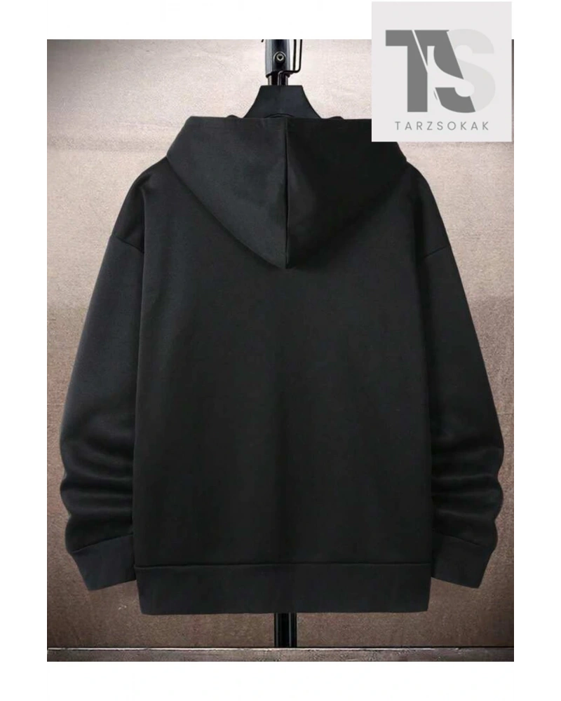 Siyah Never Shutup Racer Kalın Şardonlu Unisex Kapşonlu Hırka