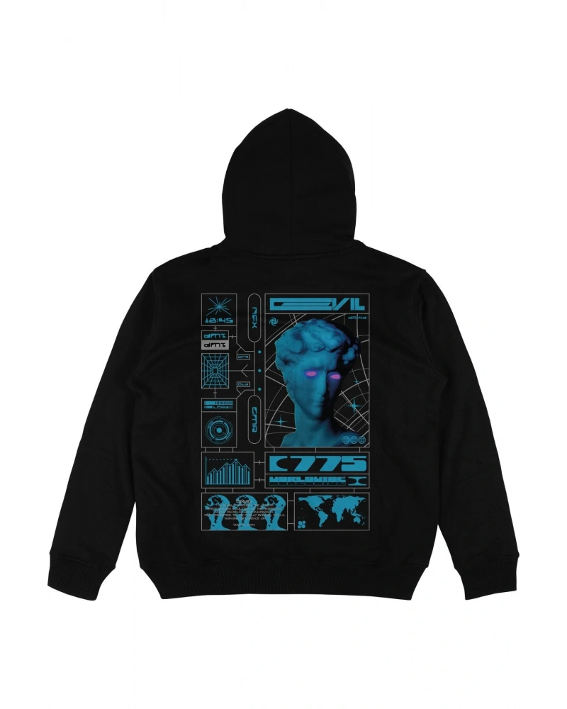 775 v2 Siyah Oversize Unisex Kapüşonlu Sweatshirt Hoodie