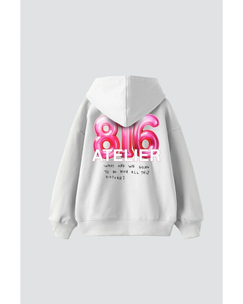 816 Atelier Baskılı Oversize Unisex Beyaz