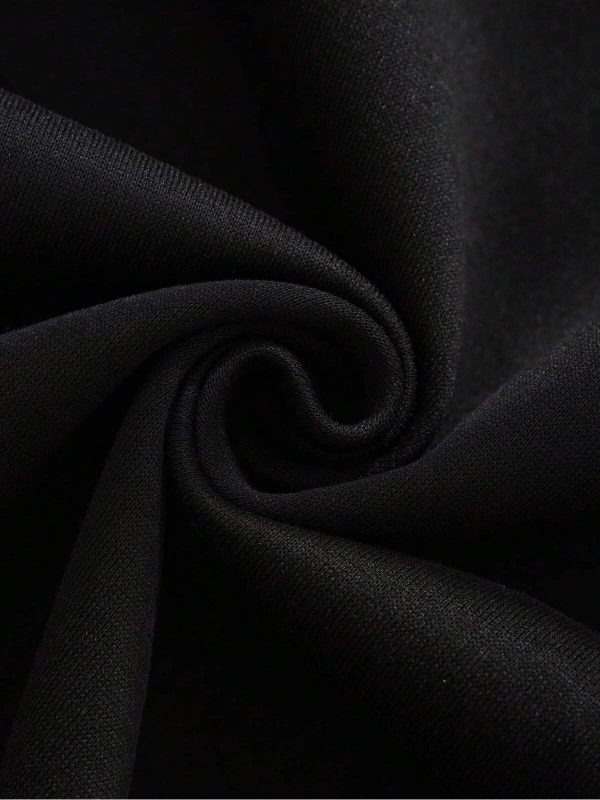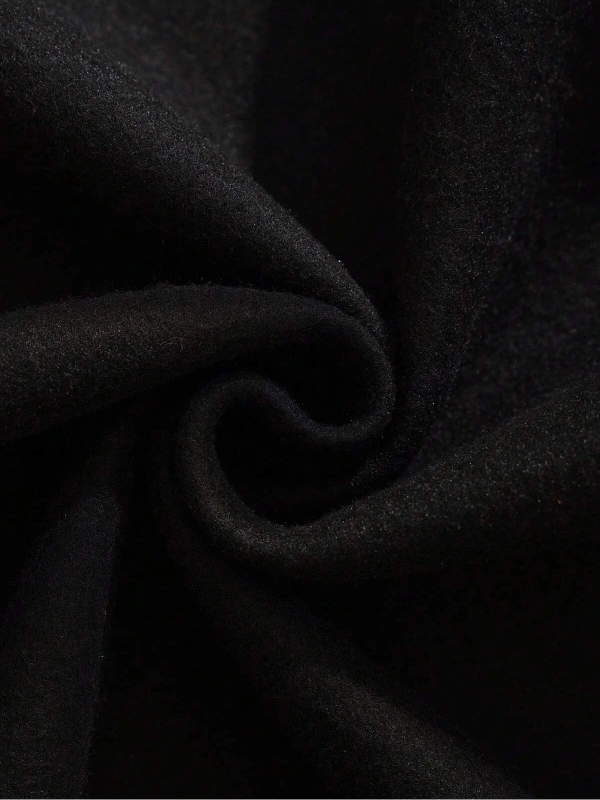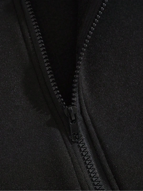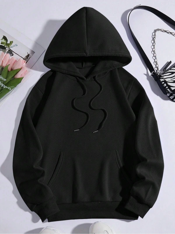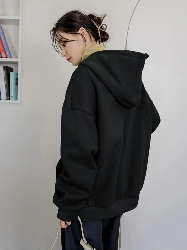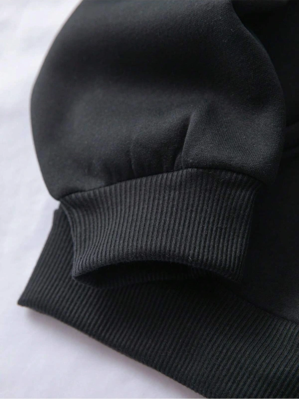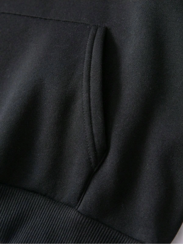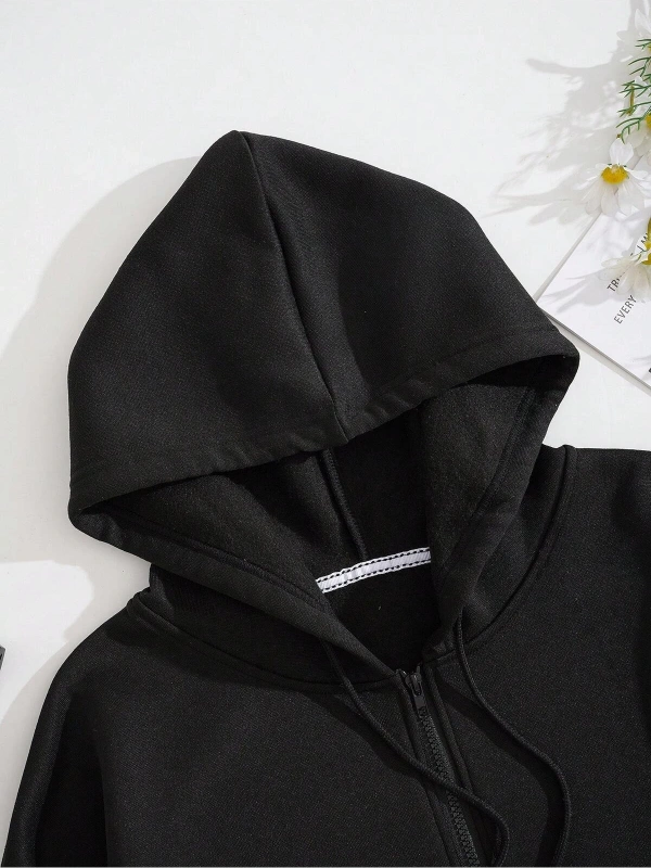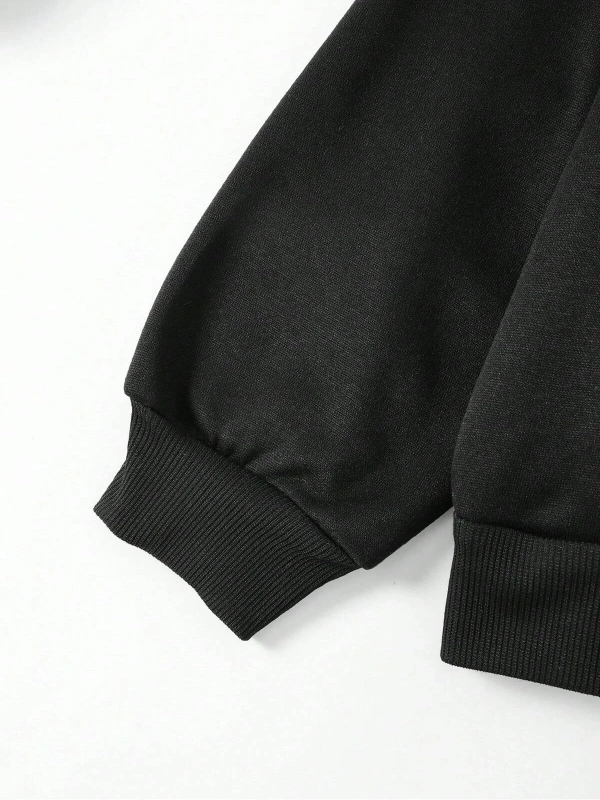 Letter Graphic Kangaroo Pocket Drawstring Lined Hoodie Siyah