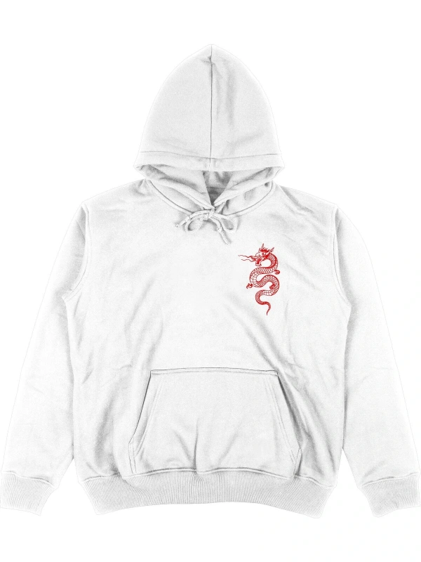 Dragon Beyaz Oversize Unisex Kapüşonlu Sweatshirt Hoodie