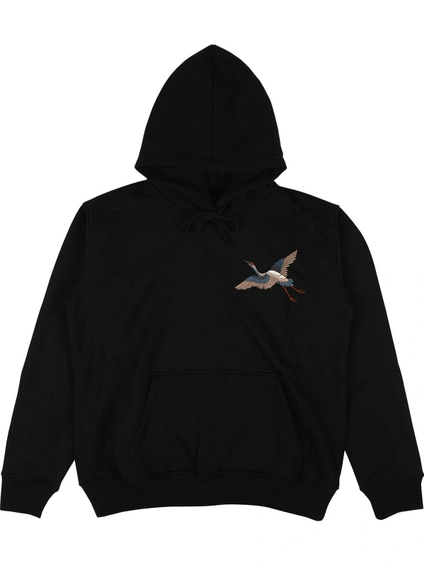 Japan Crane Siyah Oversize Unisex Kapüşonlu Sweatshirt Hoodie
