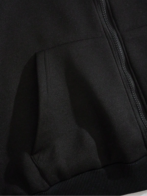 Sun & Moon Print Zip Up Drawstring Lined Hoodie Siyah