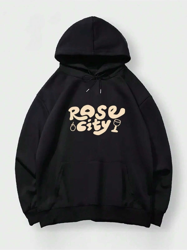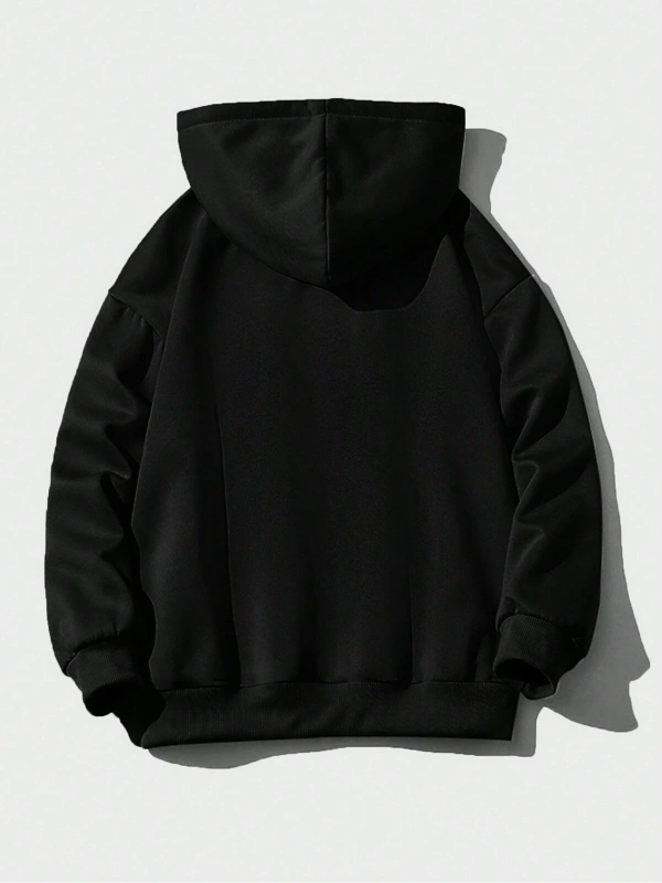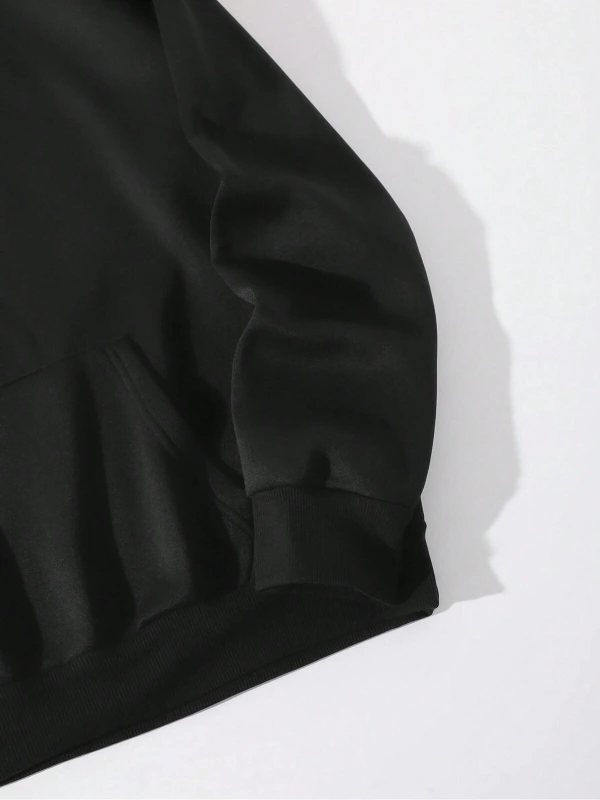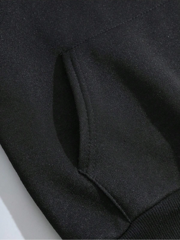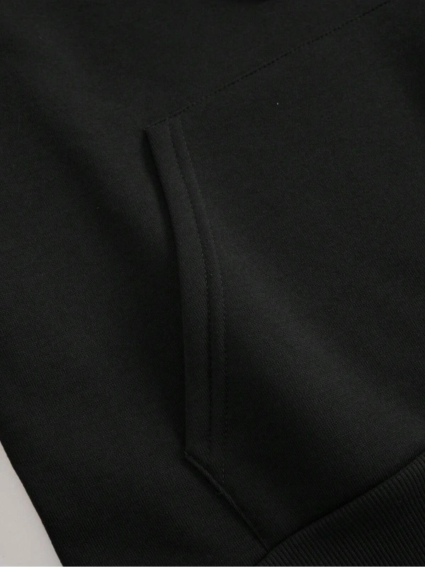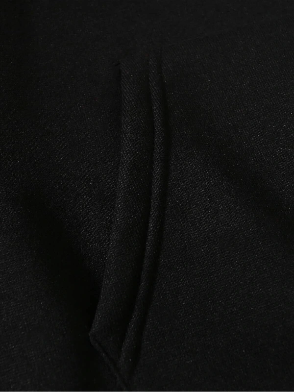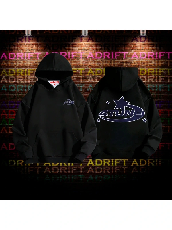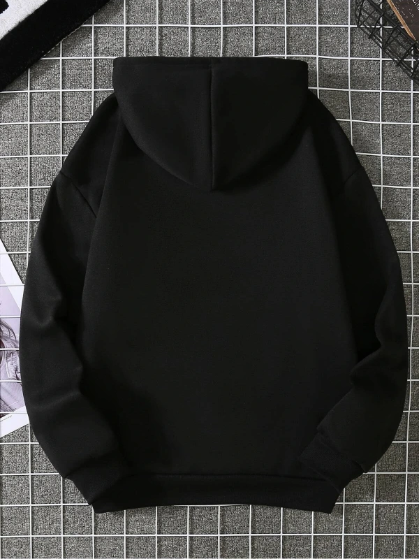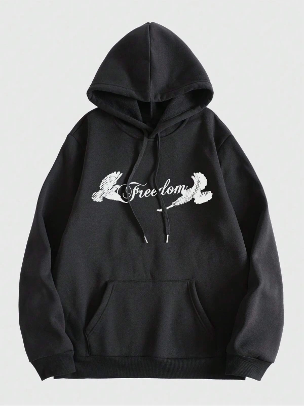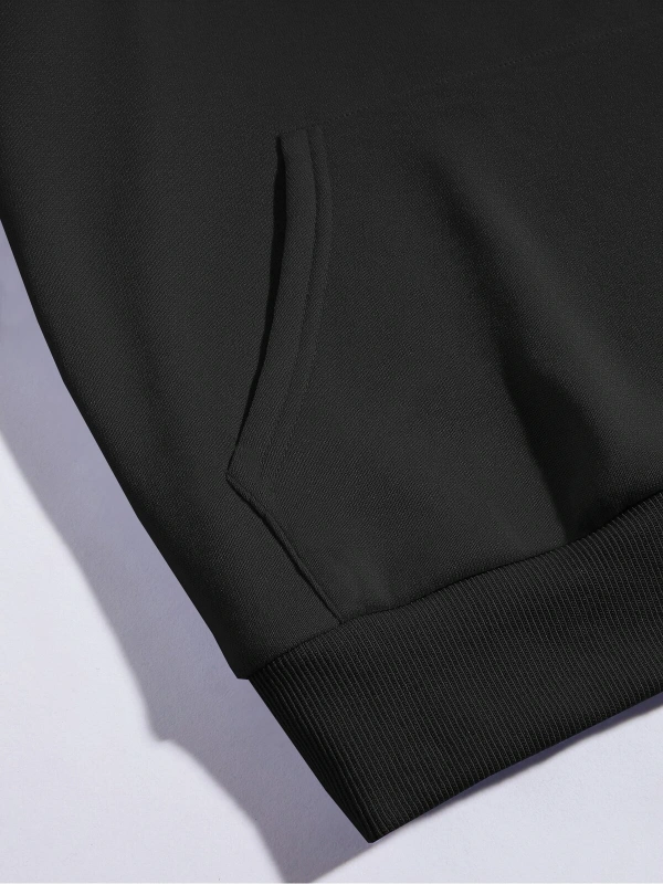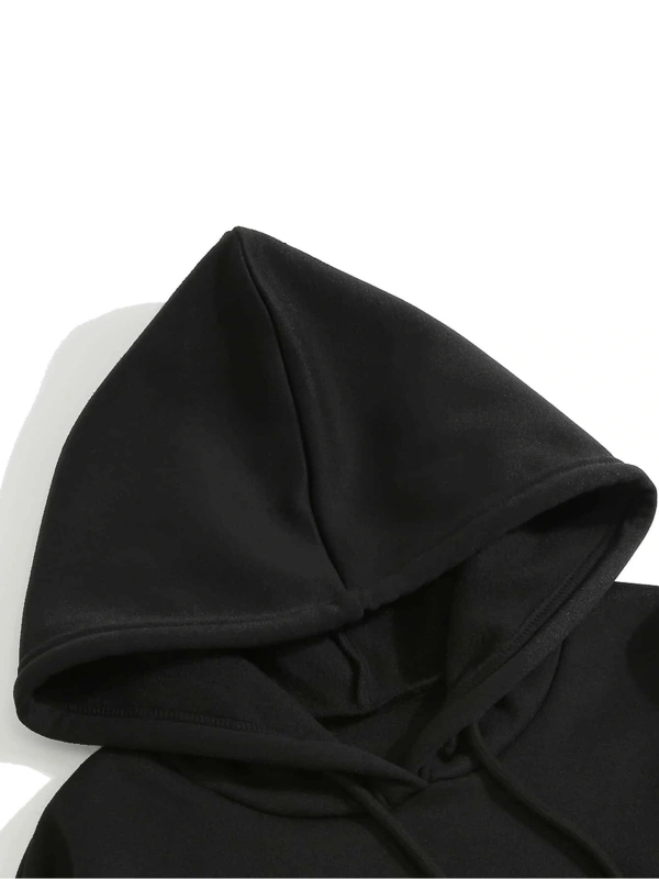 Graphic Print Kangaroo Pocket Drawstring Hoodie Siyah