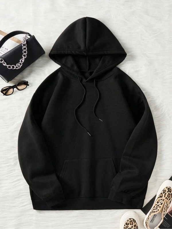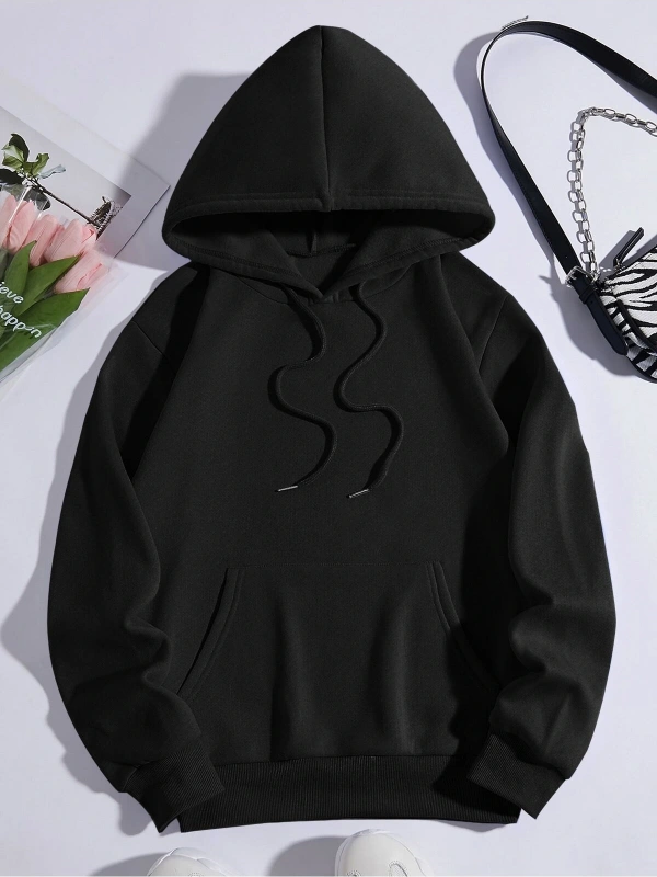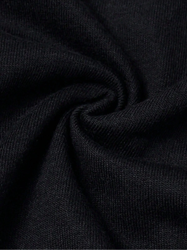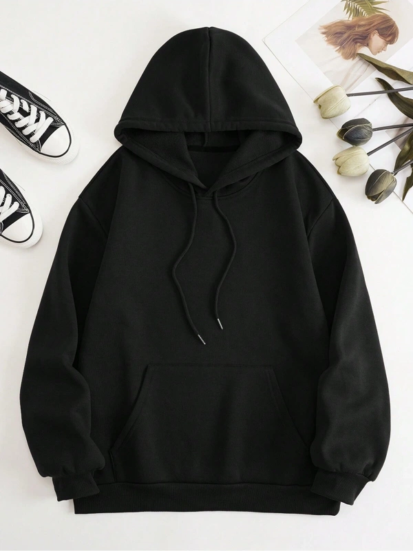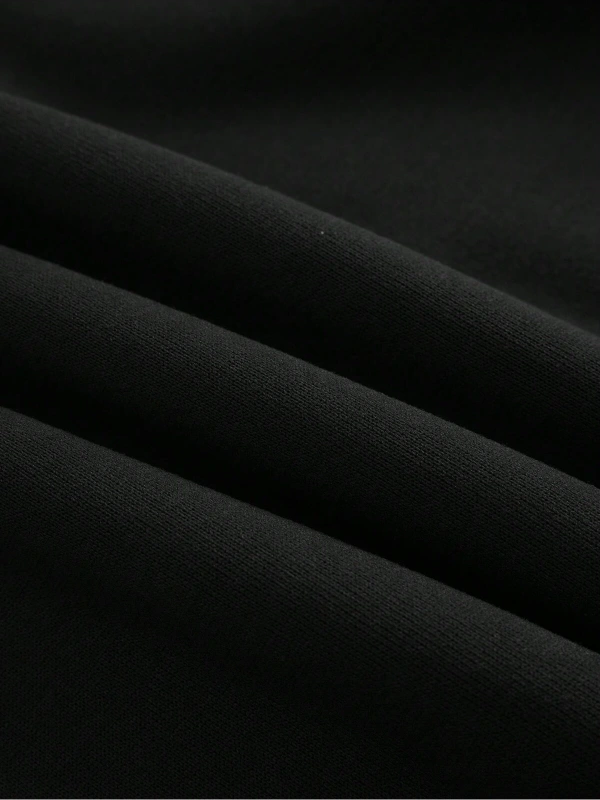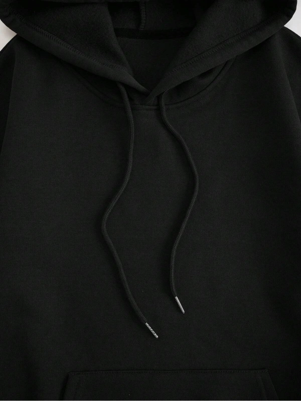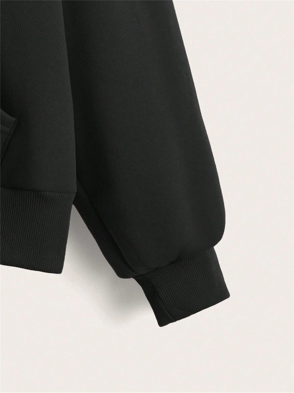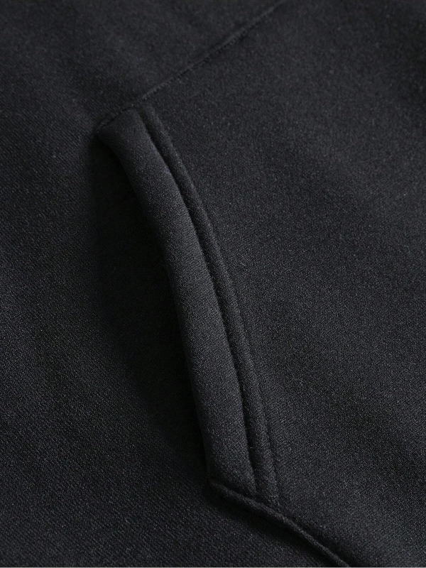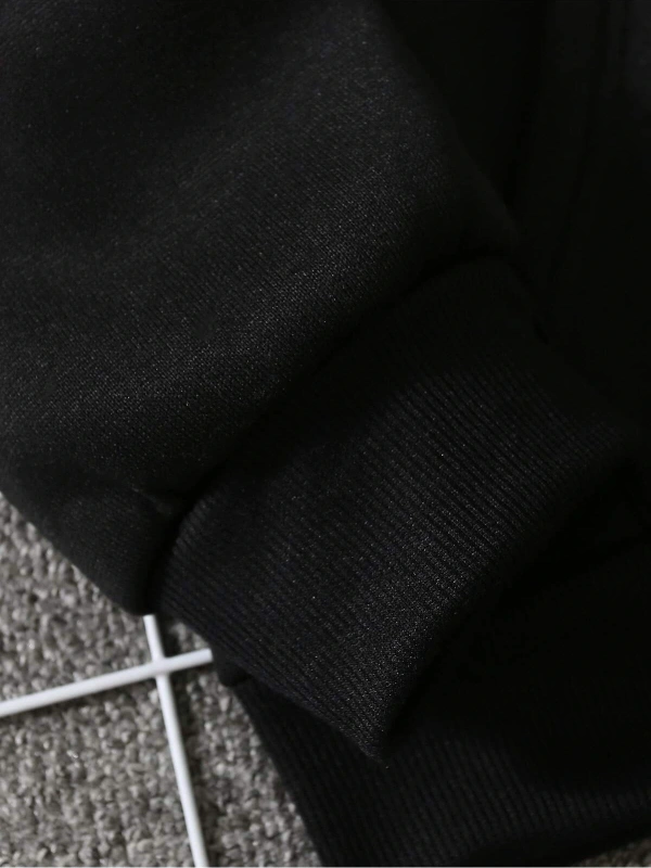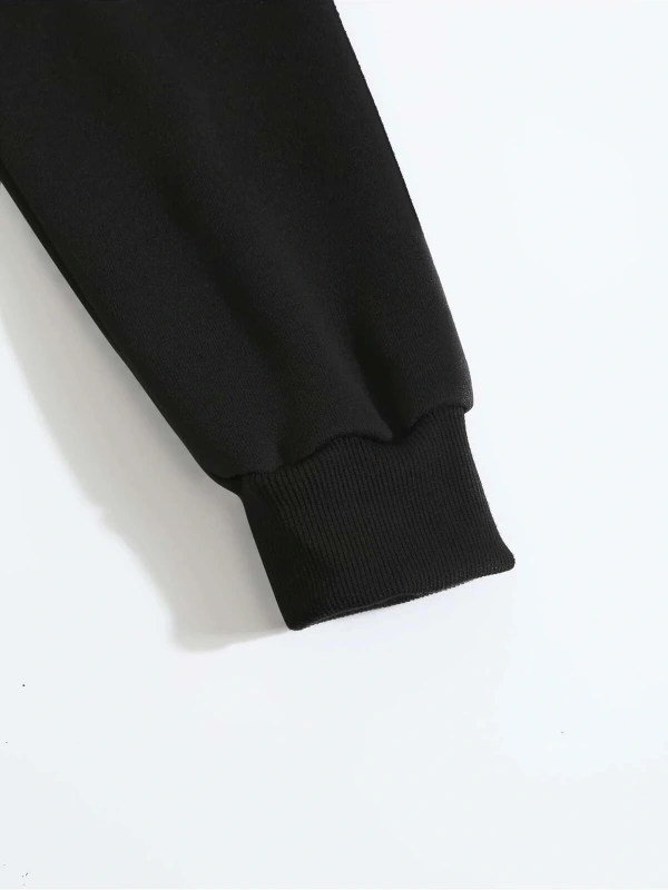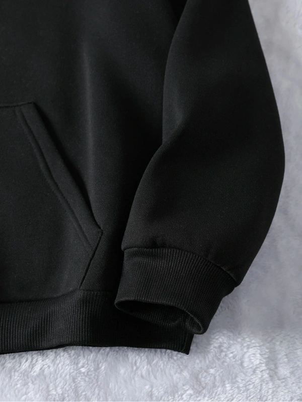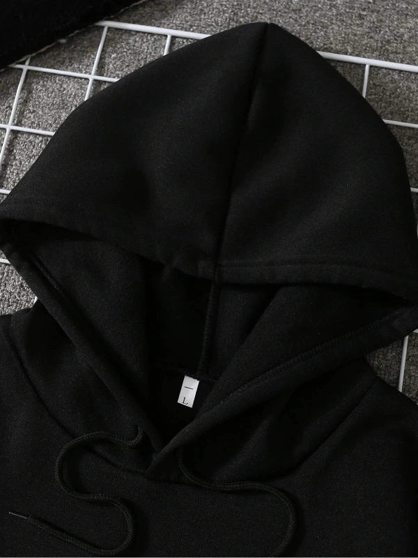 Graphic Print Kangaroo Pocket Drawstring Hoodie Siyah