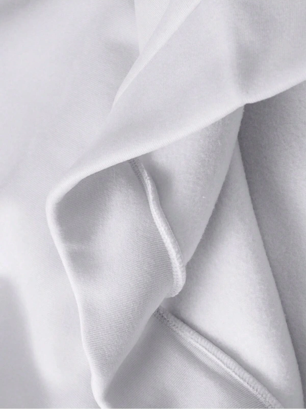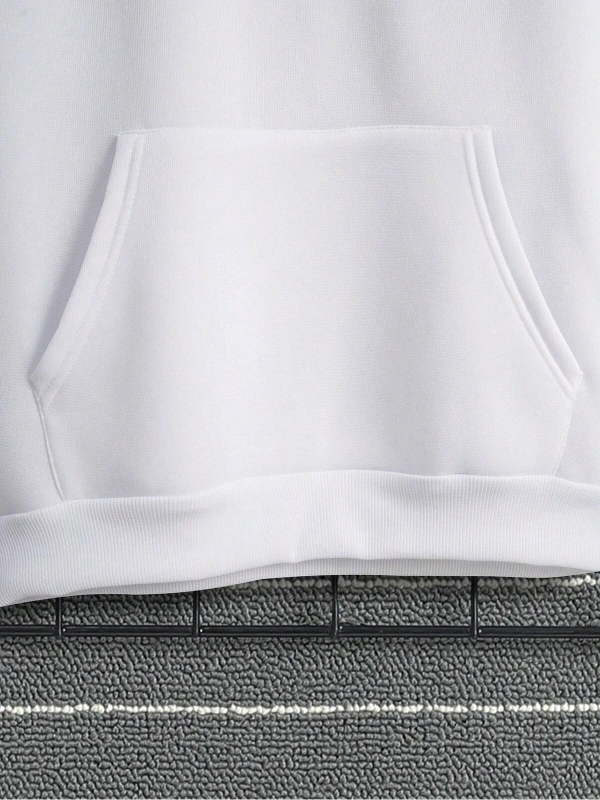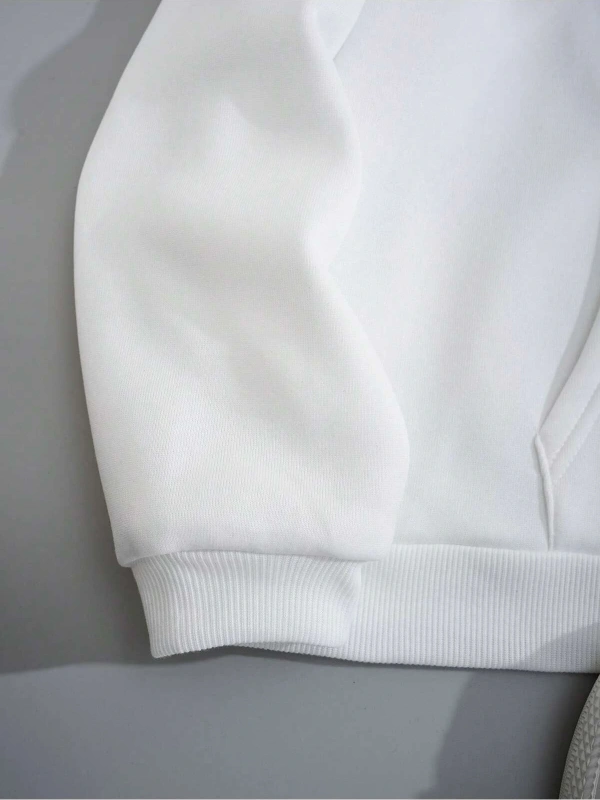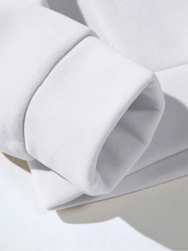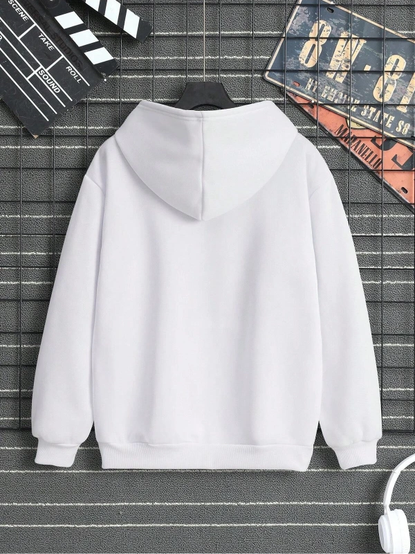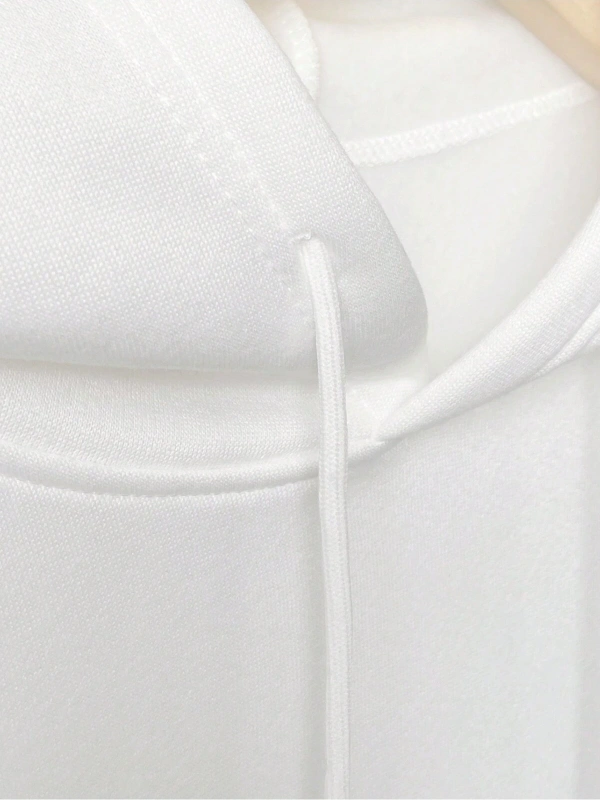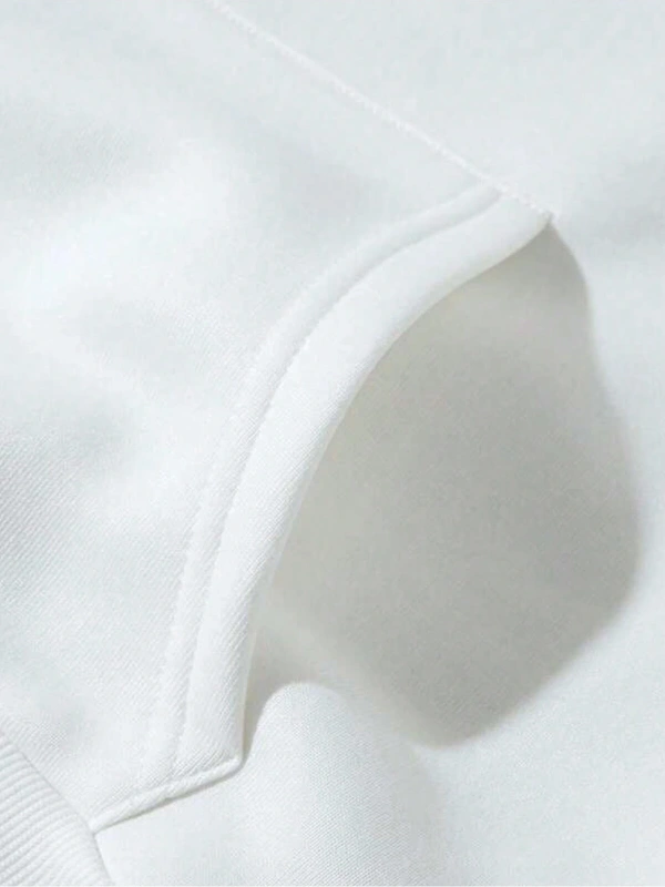Slogan Graphic Drawstring Lined Kangaroo Pocket Hoodie Beyaz