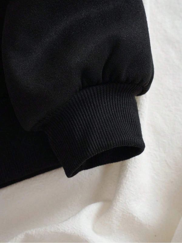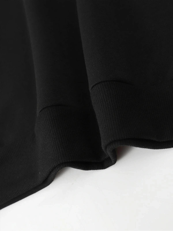 Kaburga Kalp Tasarım Baskılı Kapüşonlu Sweatshirt Hoodie Siyah