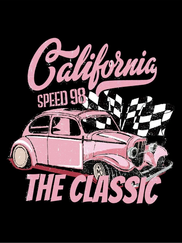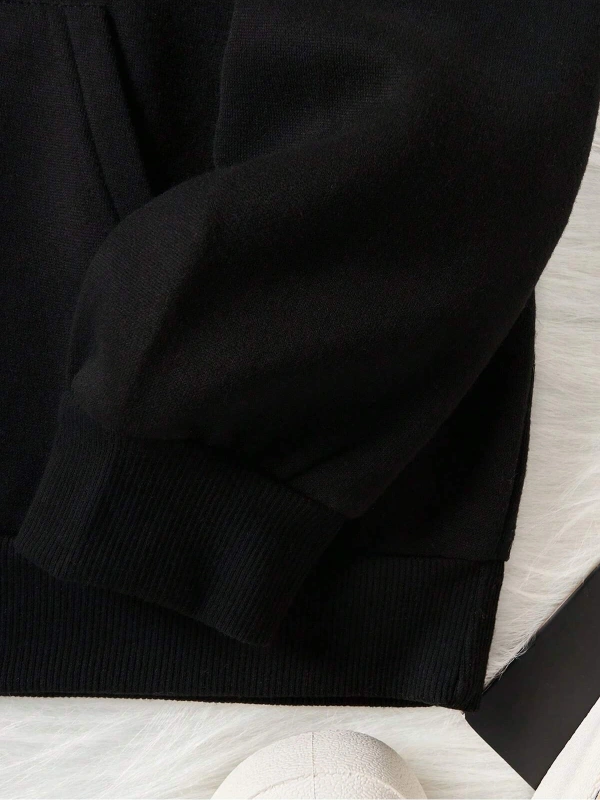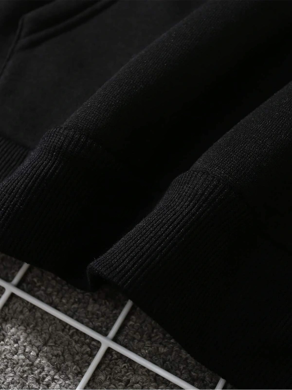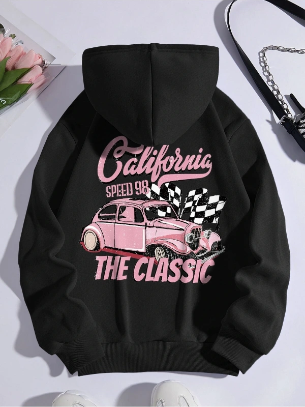Car & Letter Graphic Drawstring Lined Hoodie Siyah