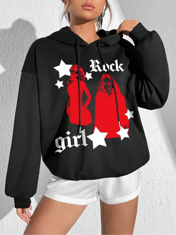 Coke serisi Figure & Letter Graphic Drop Shoulder Drawstring Hoodie