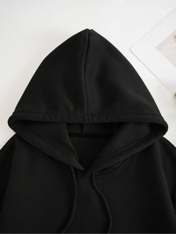 Honeyspot Letter Graphic Drop Shoulder Oversized Drawstring Hoodie Siyah