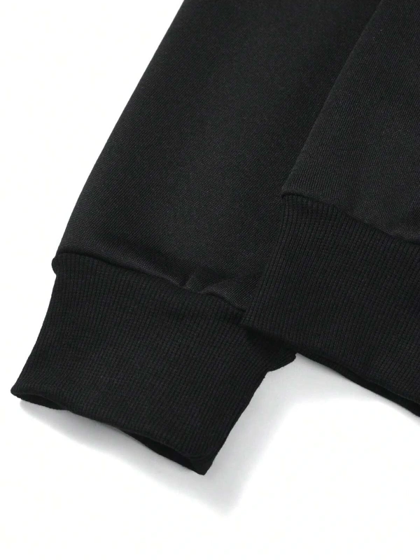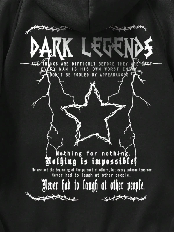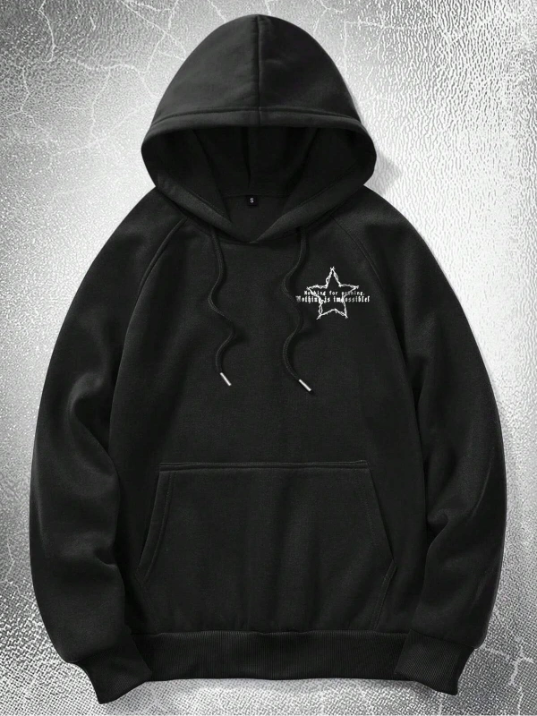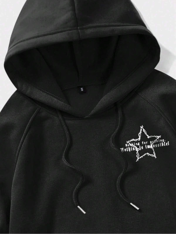 Goth Guys Star & Slogan Graphic Raglan Sleeve Drawstring Hoodie Siyah