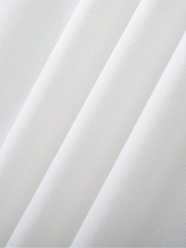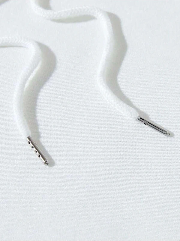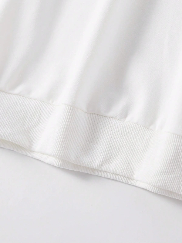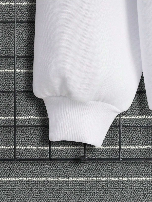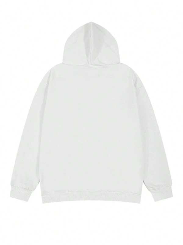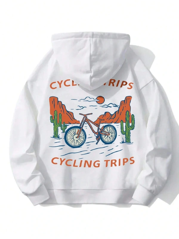 Letter & Bike Print Drop Shoulder Drawstring Hoodie Beyaz