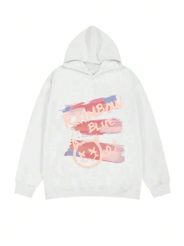 Letter Graphic Drop Shoulder Oversized Hoodie Beyaz