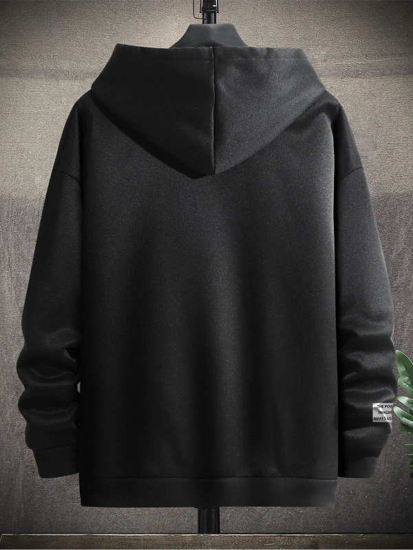 Manfinity Hypemode Slogan Graphic Kangaroo Pocket Drawstring Hoodie Siyah