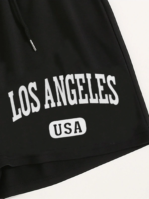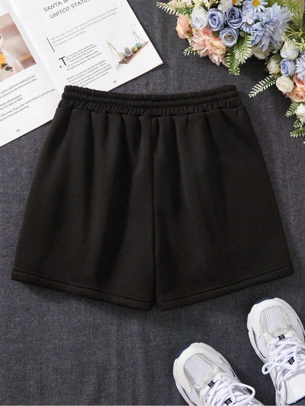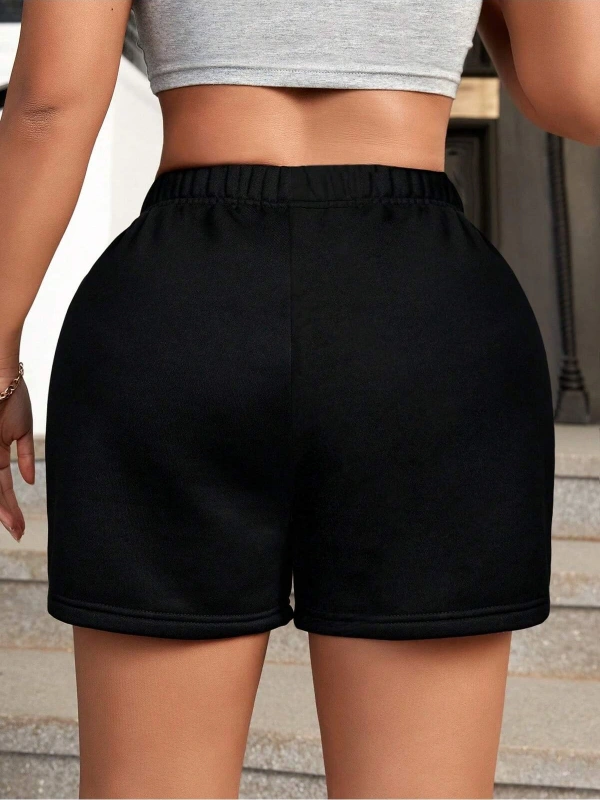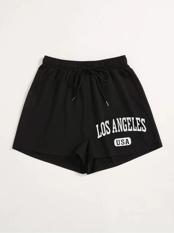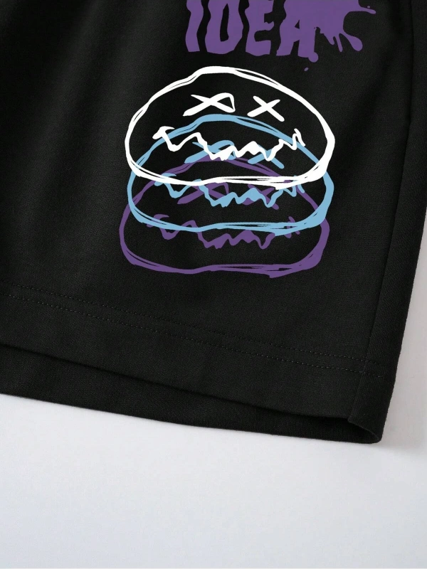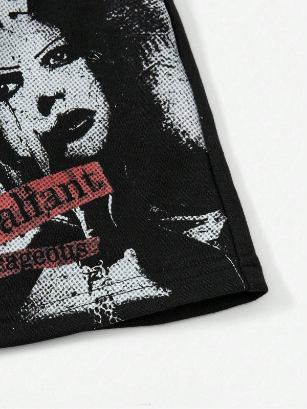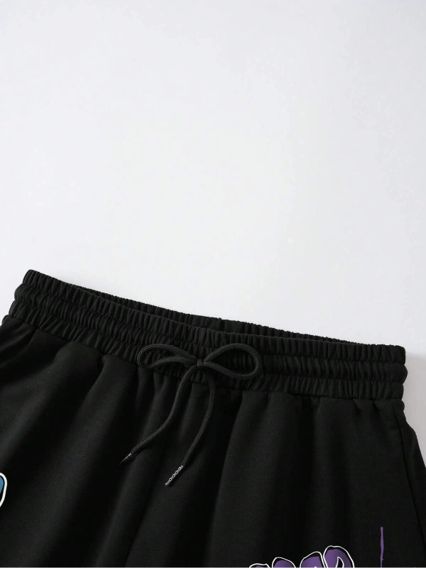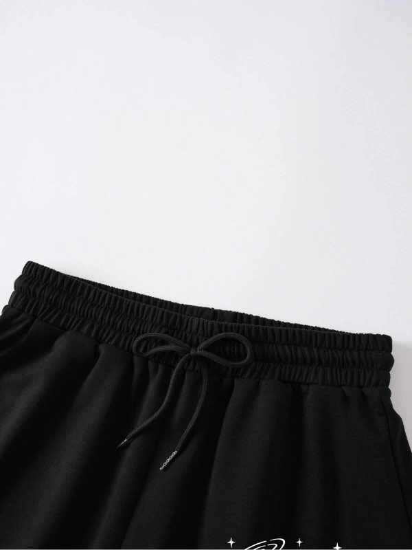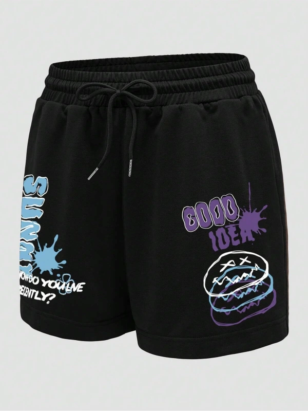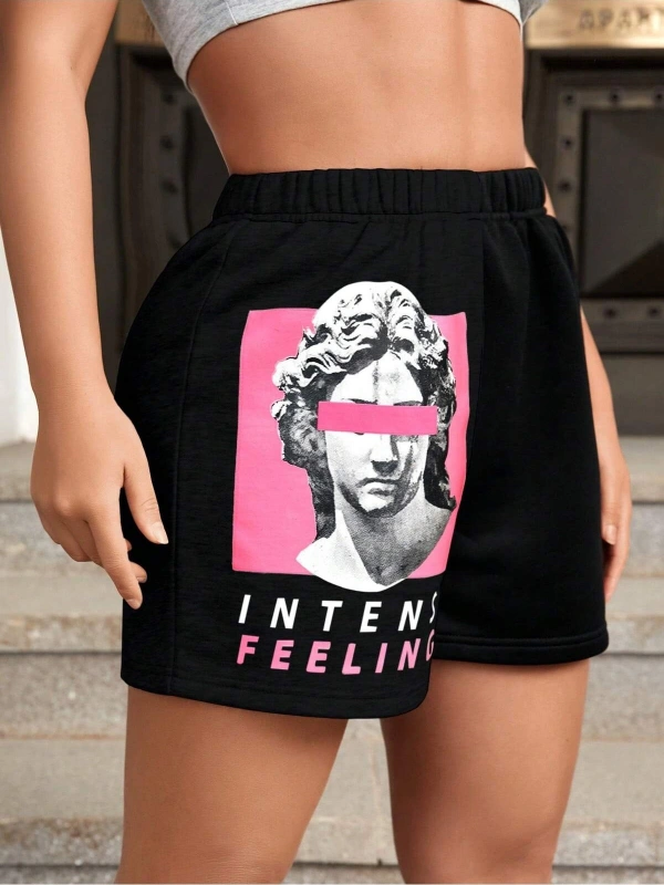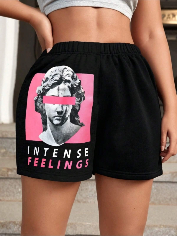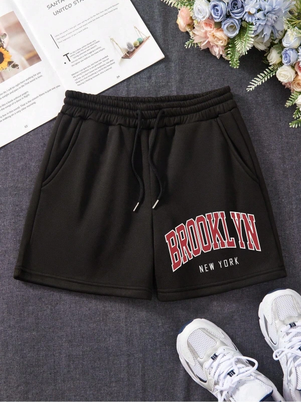 Bay Brooklyn Penye Kısa Şort - Siyah Baskılı Yüksek Bel Örme