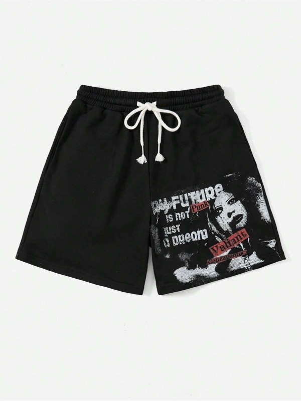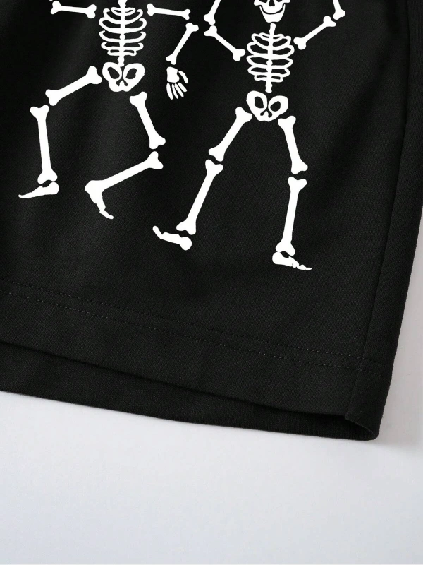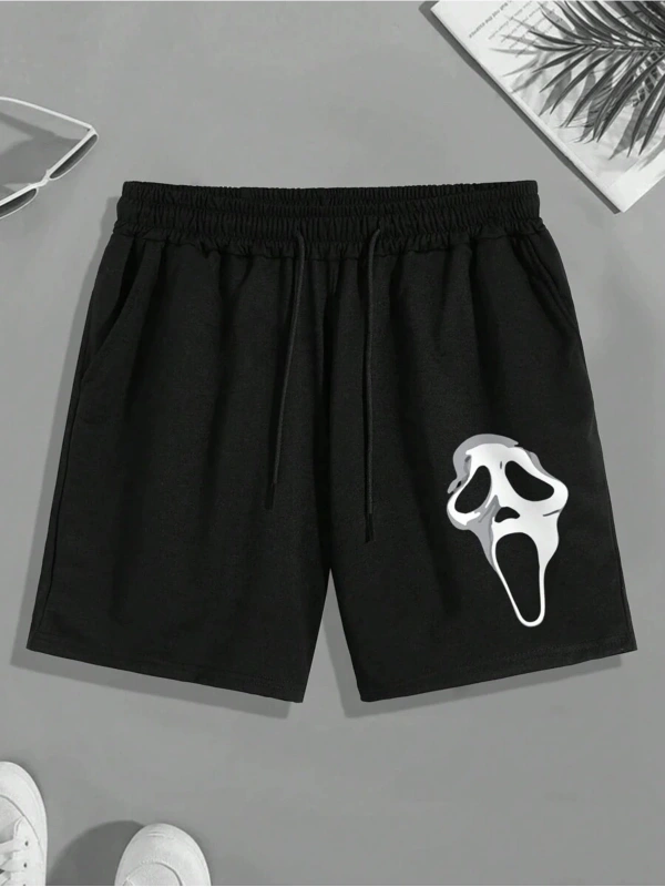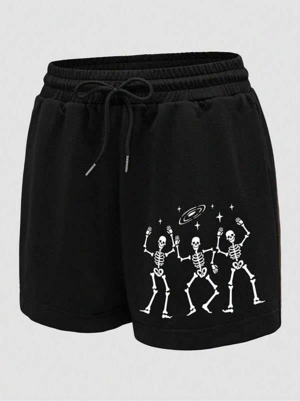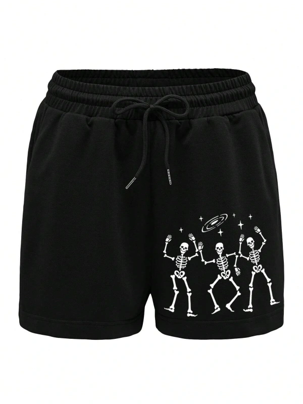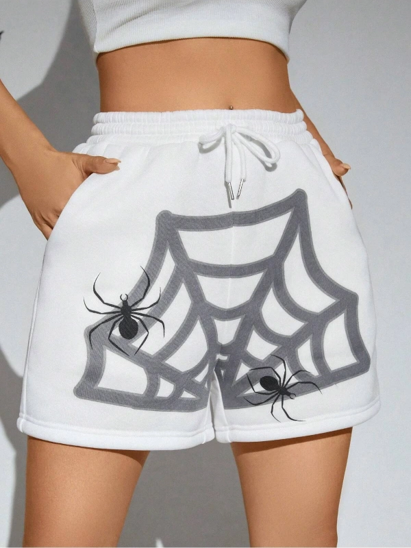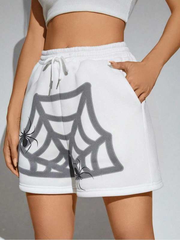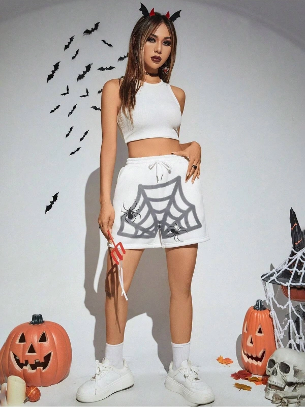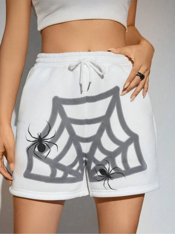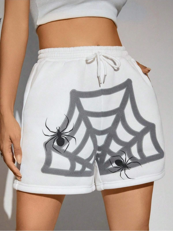 PUNK Halloween Spider Web Print Drawstring Waist Şort
