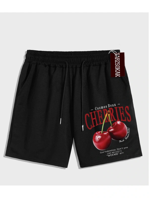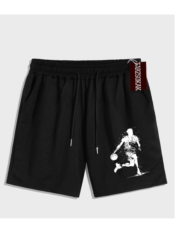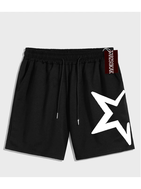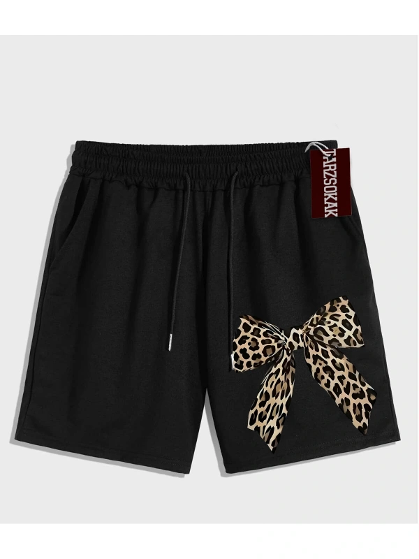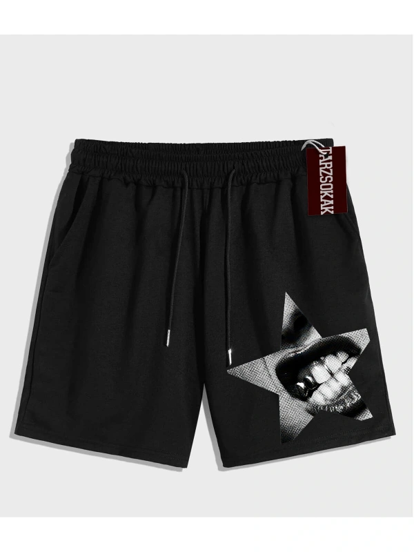 Bay Baskılı Kısa Kadın Şort Siyah Şort