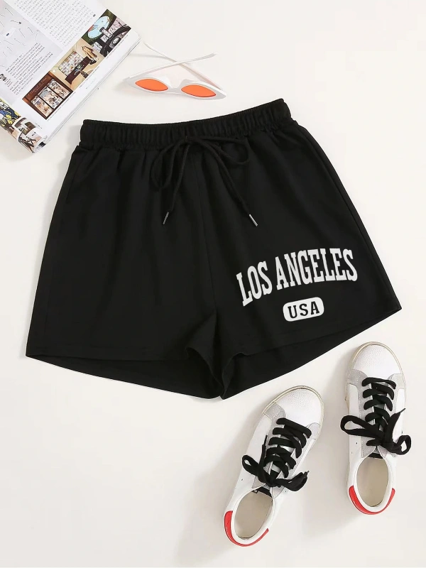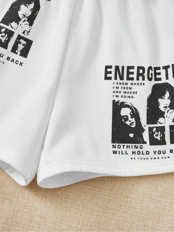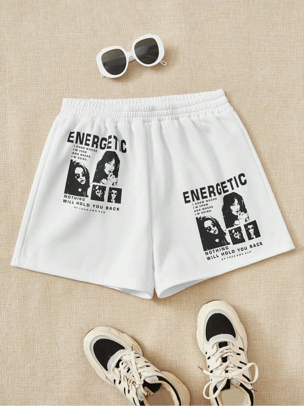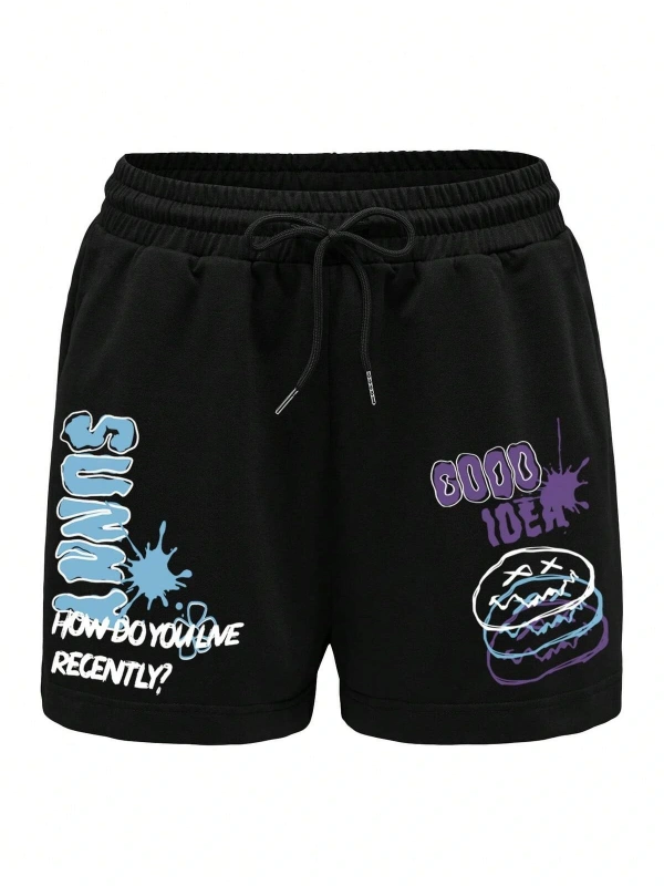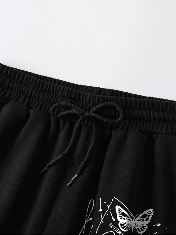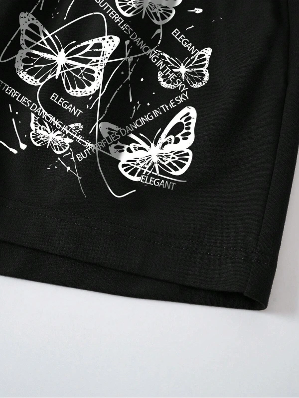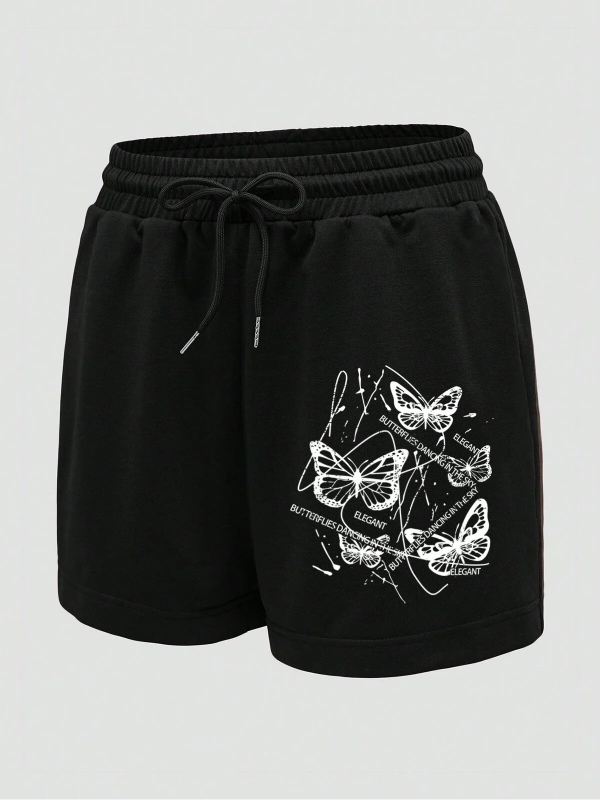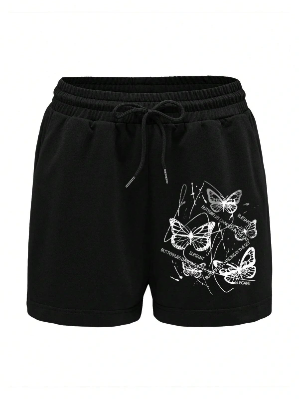 Butterfly Print Drawstring Waist Drawstring Waist Şort
