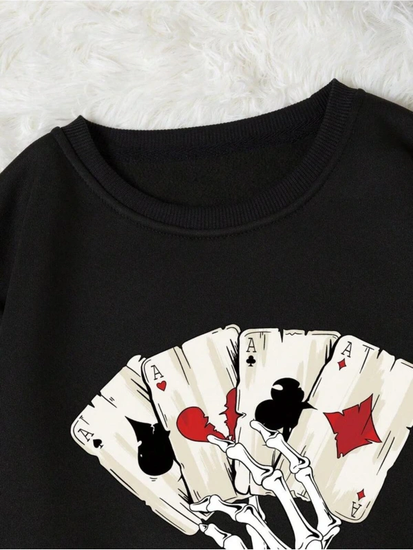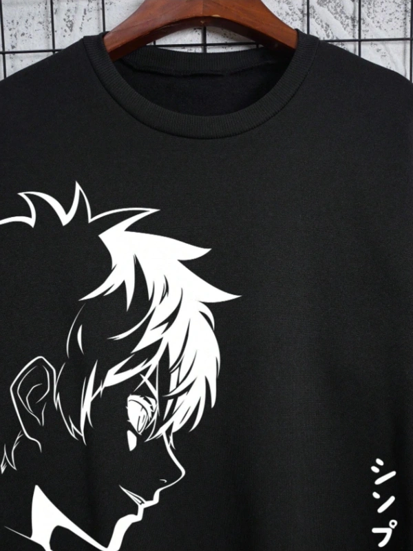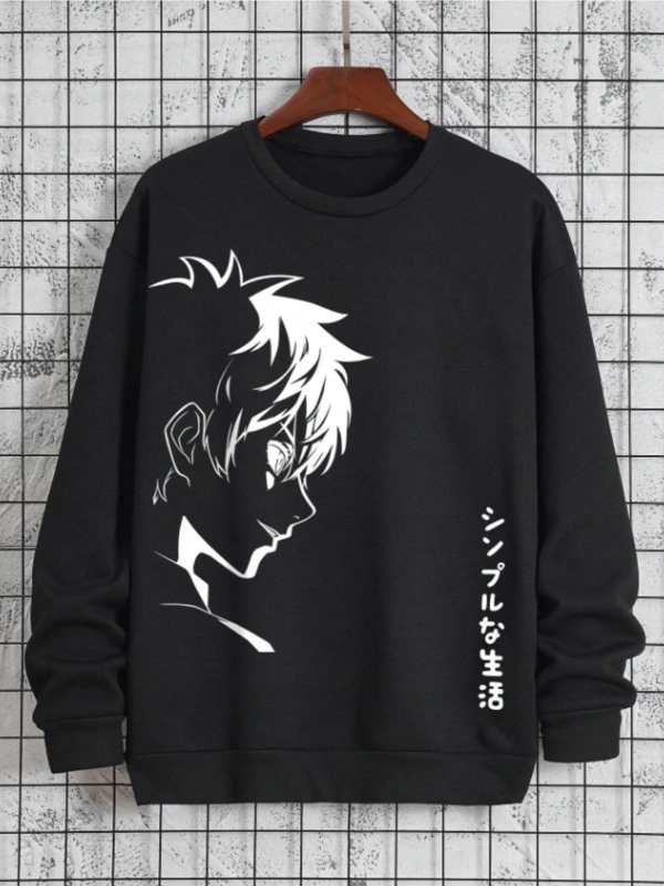Unisex Kadın/Erkek Siyah Anime Yaşam Oversize Bisiklet Yaka Pamuklu Sweatshirt