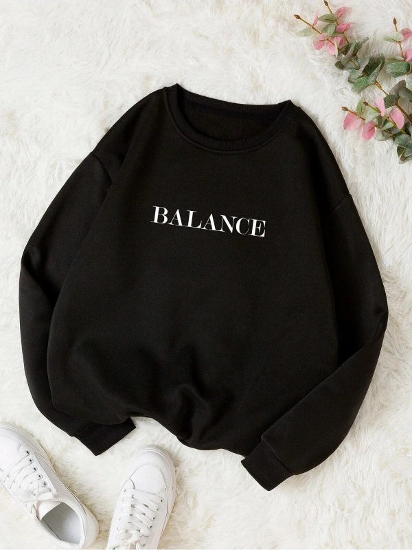 BALANCE Renkli Oversize Bisiklet Yaka Pamuklu Sweatshirt Siyah