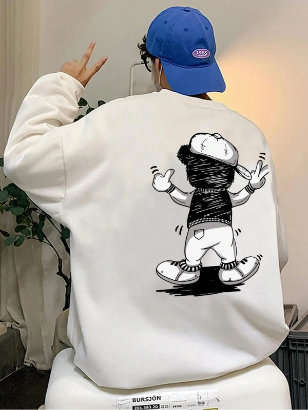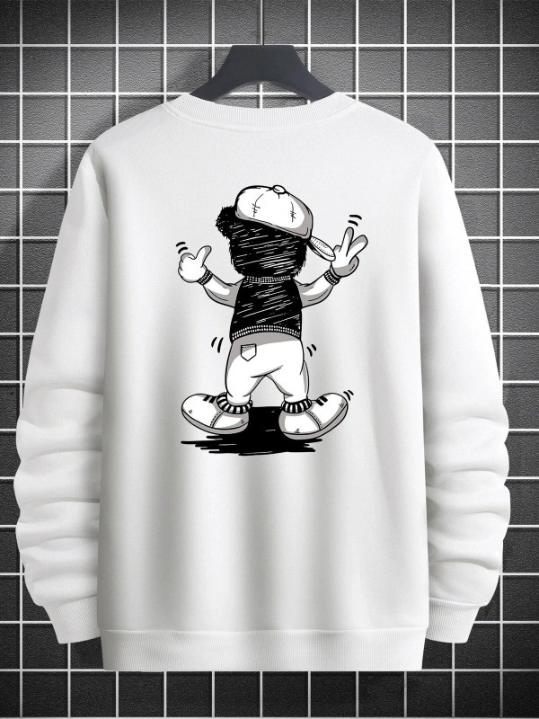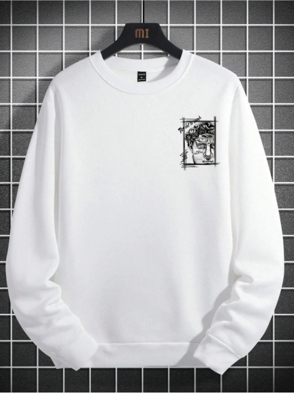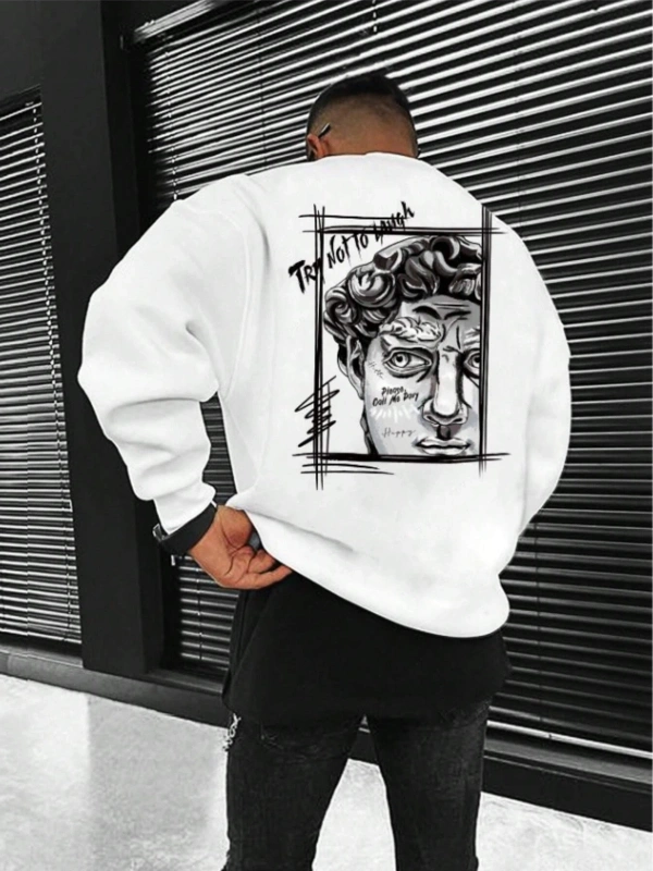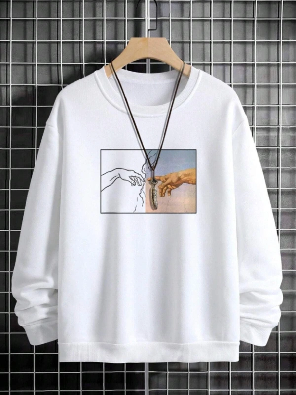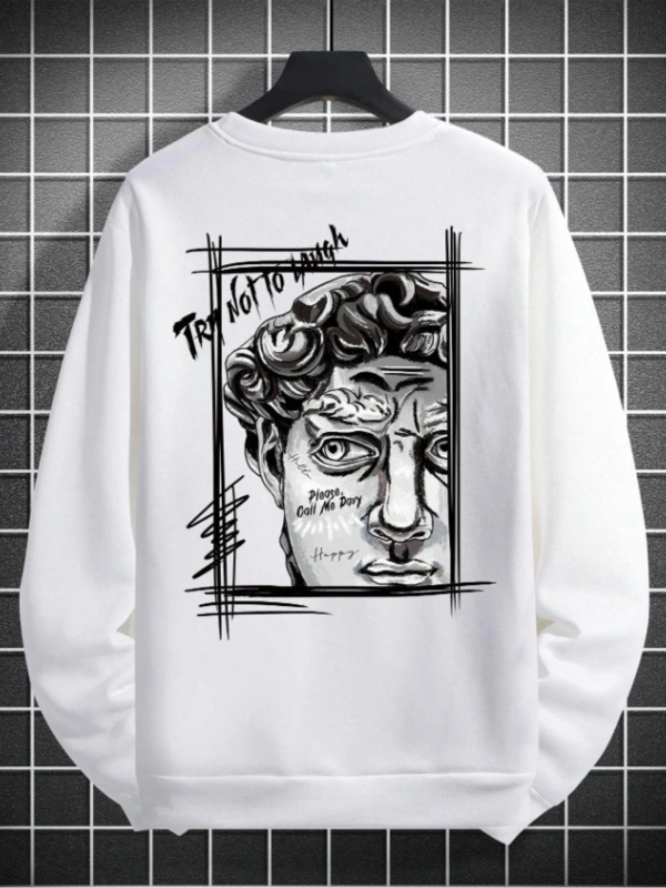 Unisex Kadın/Erkek Beyaz Sanat Oversize Bisiklet Yaka Pamuklu Sweatshirt