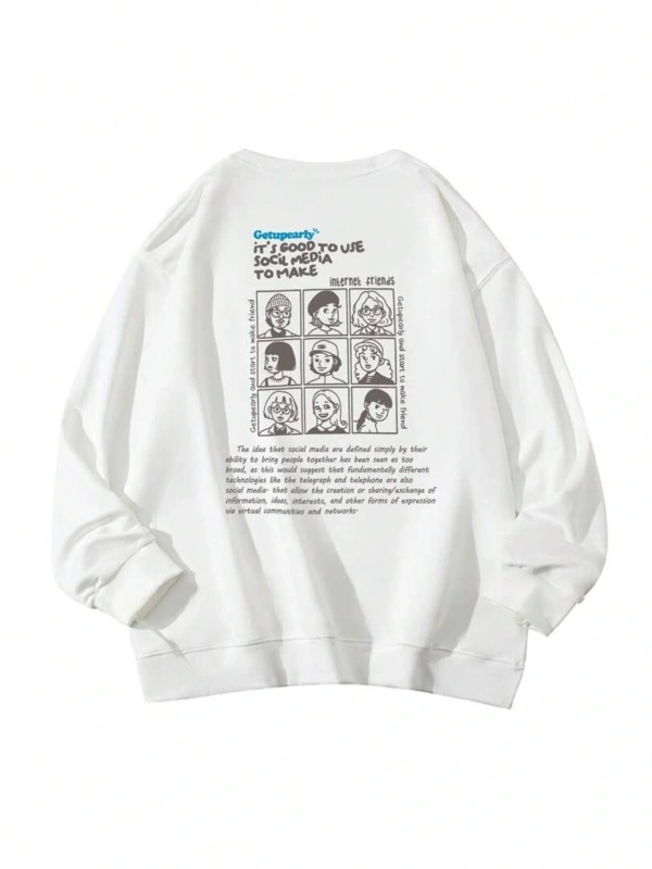 GETUPEARLY Özel Renkli Oversize Bisiklet Yaka Pamuklu Sweatshirt Beyaz