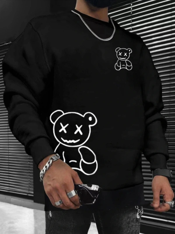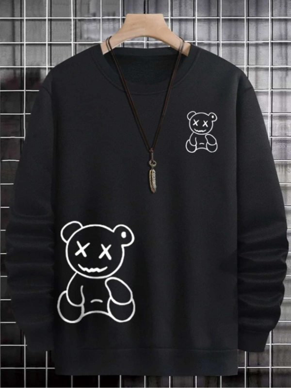 Happy Bear Oversize Bisiklet Yaka Pamuklu Sweatshirt Siyah