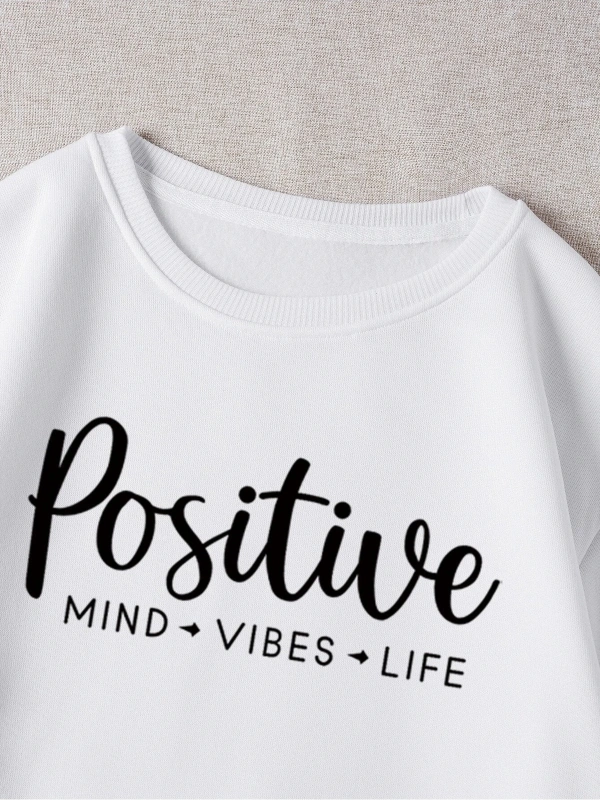 Kadın Positive Renkli Oversize Bisiklet Yaka Pamuklu Sweatshirt Beyaz