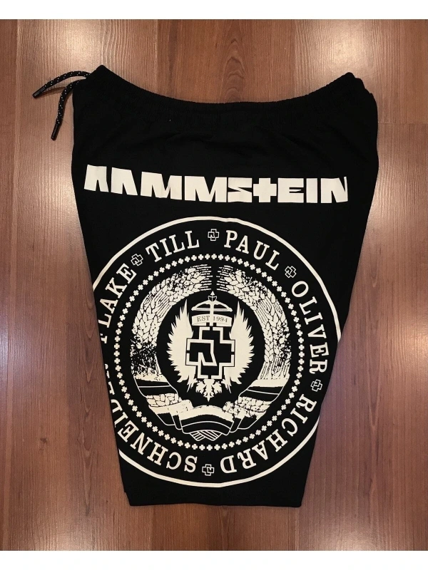 Mavi Etiket Rammstein Est 1994 Baskılı Siyah Şort ADR-SRT-256