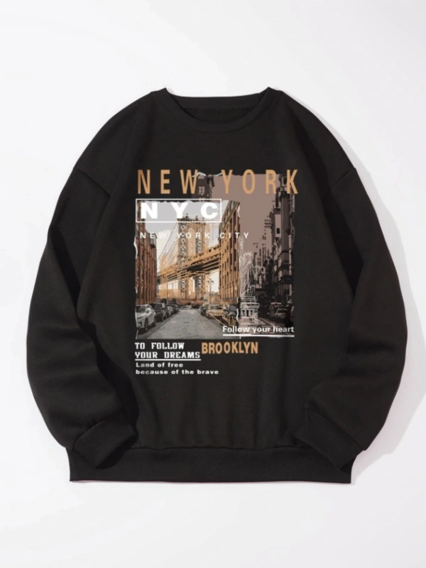 Newyork NYC Renkli Oversize Bisiklet Yaka Pamuklu Sweatshirt Siyah