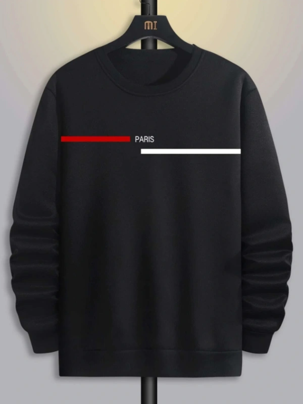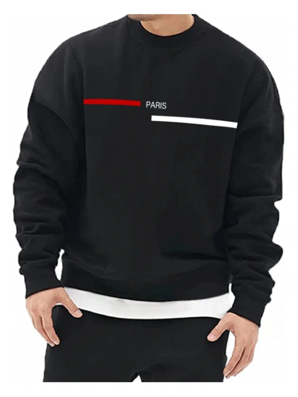 PARİS Oversize Bisiklet Yaka Pamuklu Sweatshirt Siyah