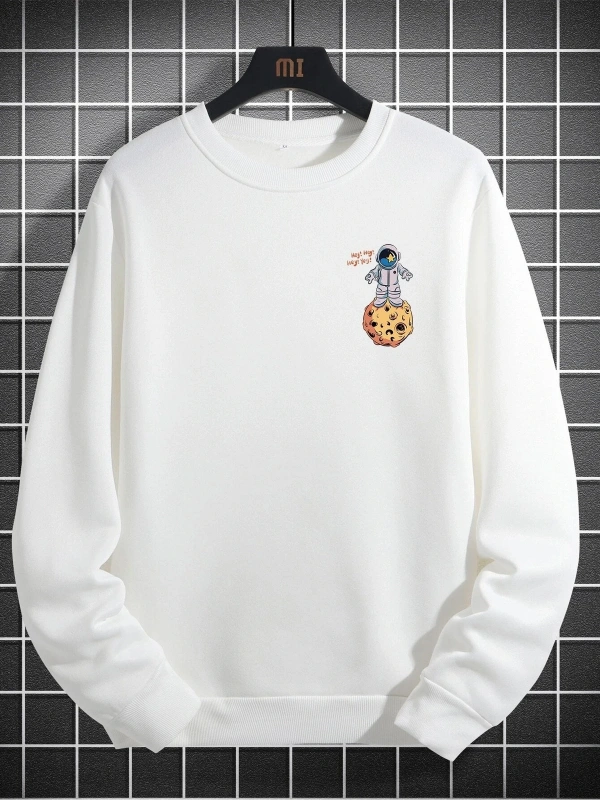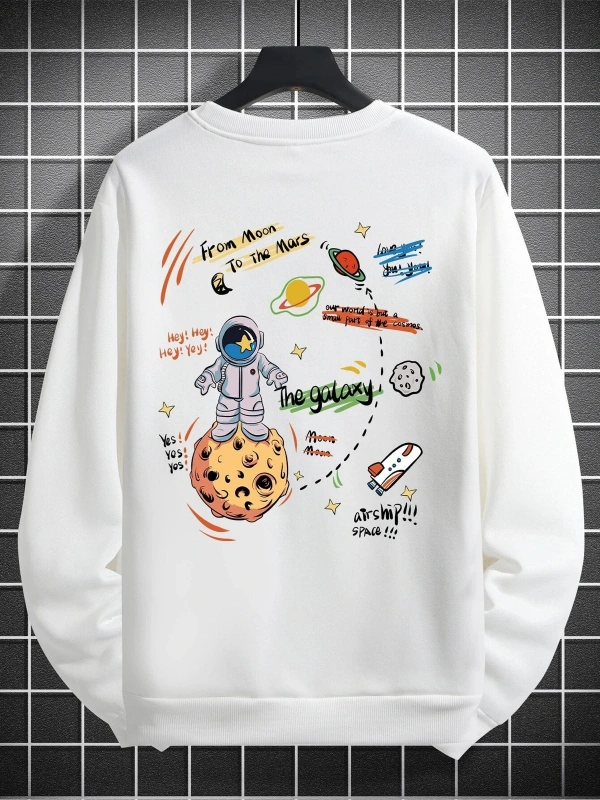 Unisex Kadın/Erkek Beyaz Galaxy Oversize Bisiklet Yaka Pamuklu Sweatshirt