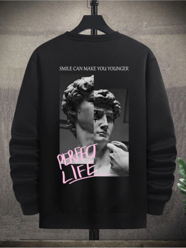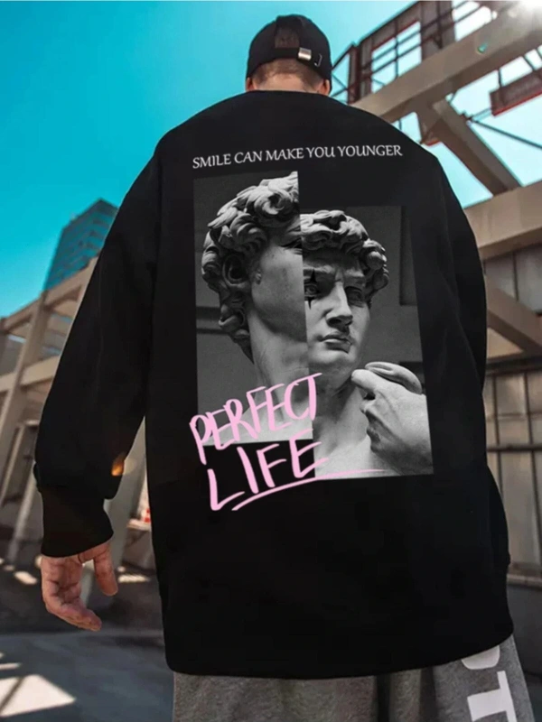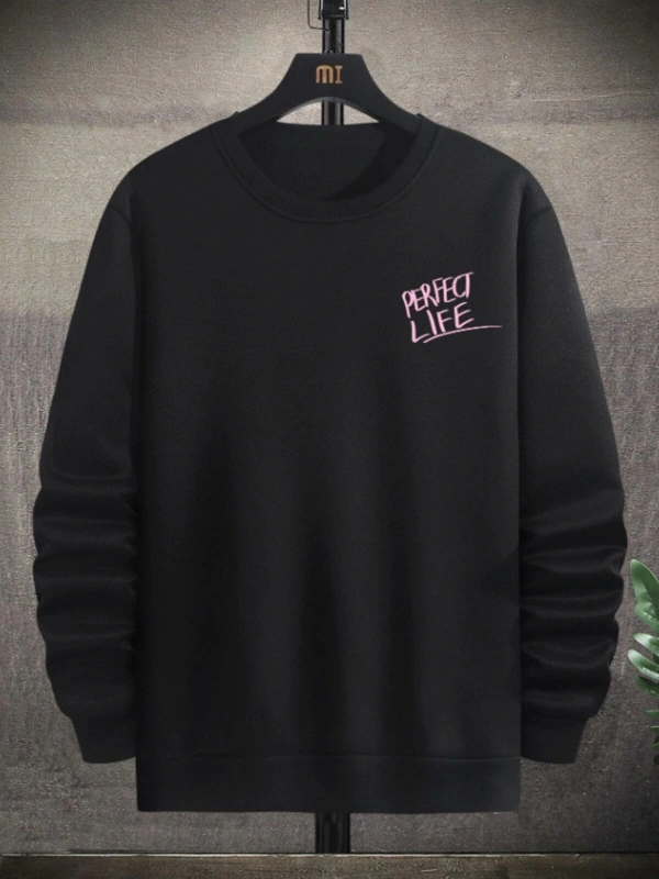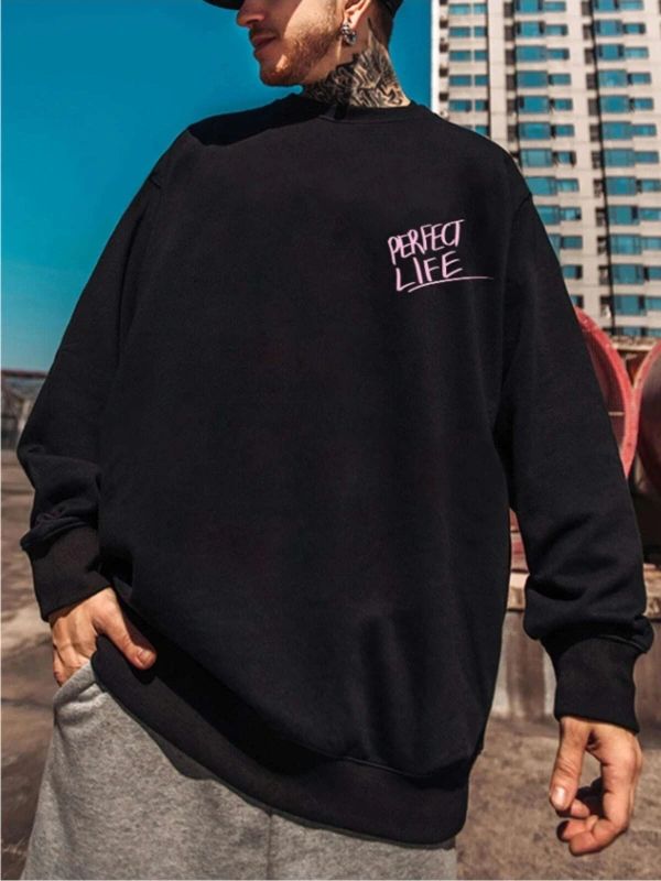 Unisex Kadın/Erkek Siyah Perfect Life Oversize Bisiklet Yaka Pamuklu Sweatshirt