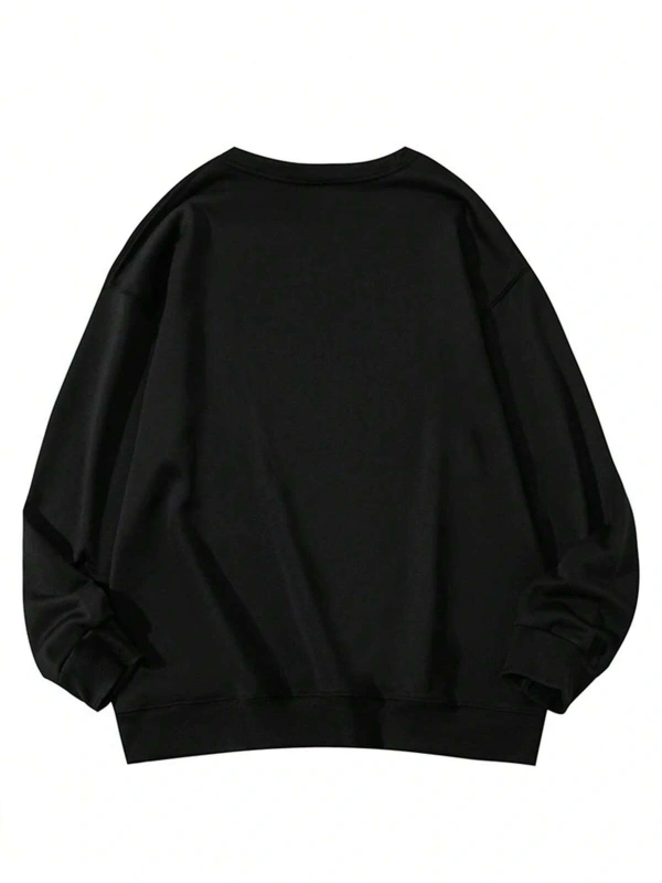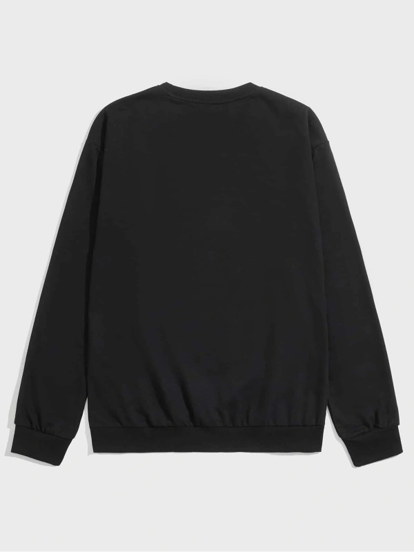 ROMWE Guys Letter & Skull Print Pullover Siyah