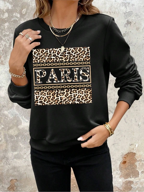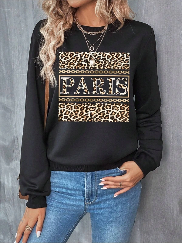 Coke serisi Leopard & Letter Graphic Sweatshirt