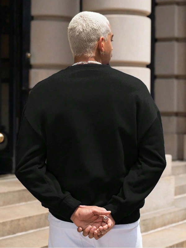 Slogan Graphic Drop Shoulder Sweatshirt Siyah