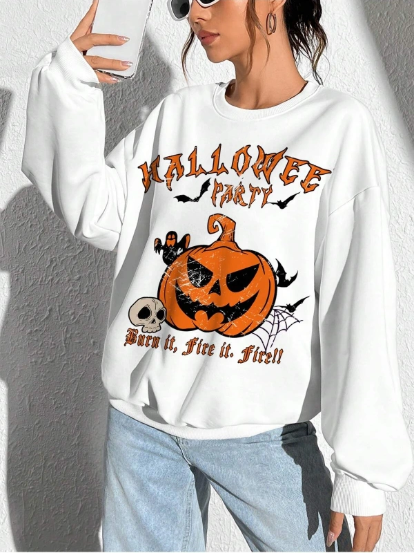 Coolane Halloween Print Drop Shoulder Oversize Sweatshirt Beyaz