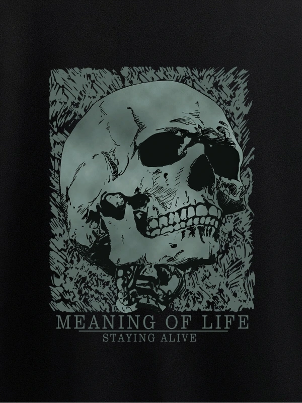 Goth Guys Slogan & Skull Print Pullover Siyah