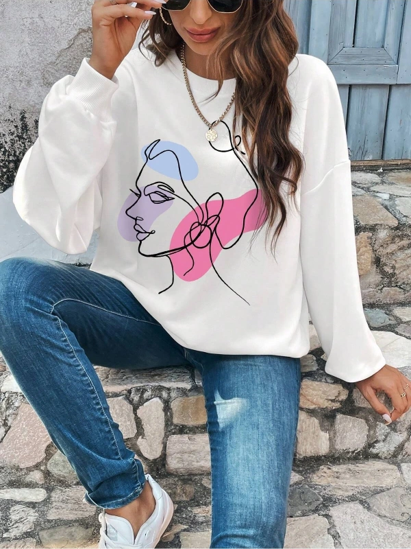 KOD ADR-SHEN Clasi Abstract Figure Graphic Drop Shoulder Sweatshirt Beyaz